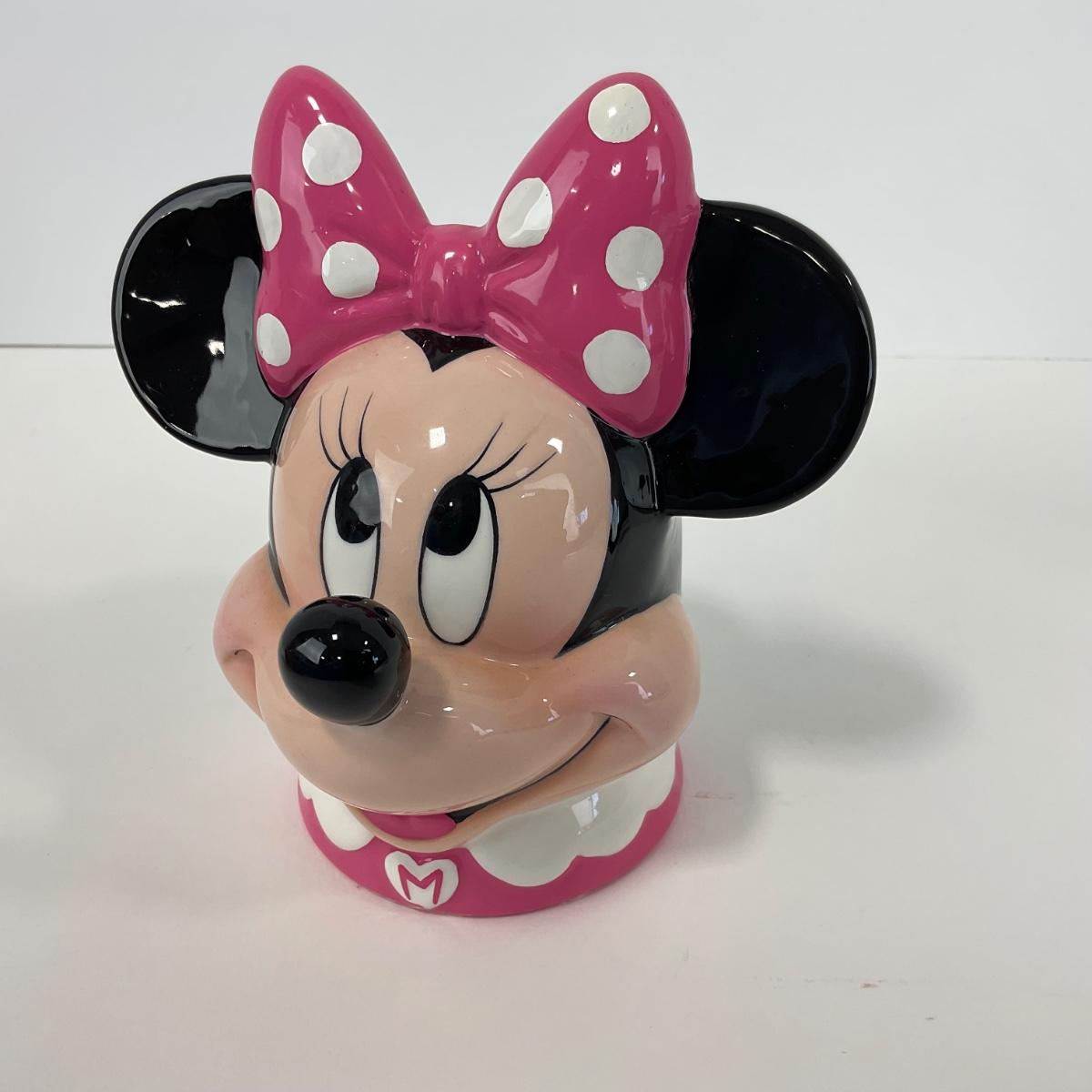 Two Enesco savings banks one is Mickey Mouse the other is Minnie Mouse both appear to be in good shape. Please see photos for details and condition. Any condition statement is given as a courtesy to a client, is an opinion, and should not be treated as a statement of fact. Reference to condition written, oral or within a condition report shall not be regarded as a full account of condition and may not include all defects, alterations, or restorations. Absence of a condition report does not imply a lot is flawless or lacking imperfections or damage. Katherine’s Auction & Appraisal Service shall have no responsibility for any error or omission. Returns shall not be accepted on the basis of condition. ::: Shipping is available on this lot. If you require shipping you must let us know at the close of the auction. We will coordinate with you after the item has been won. Shipping fees will include insurance up to or exceeding the value of all items being mailed. If you have any questions regarding this lot please contact the auctioneer either via this website, by direct email or by phone. PICK UP TIMES and other important information can be found in the TERMS and DESCRIPTION of the auction. Please take a look for pertinent information. Thanks!