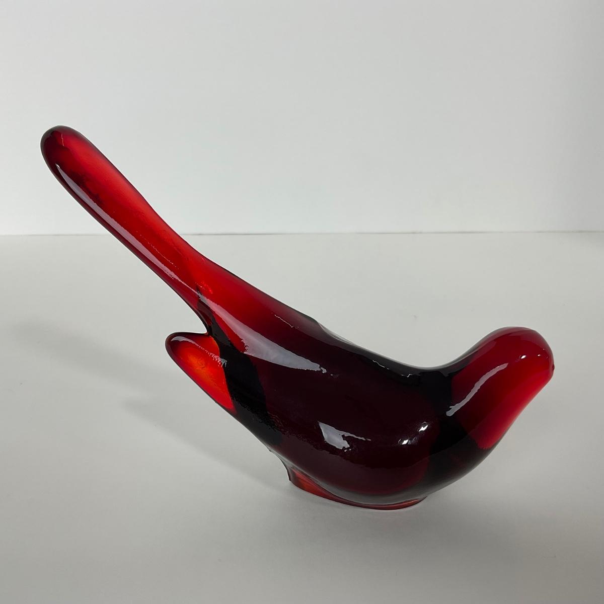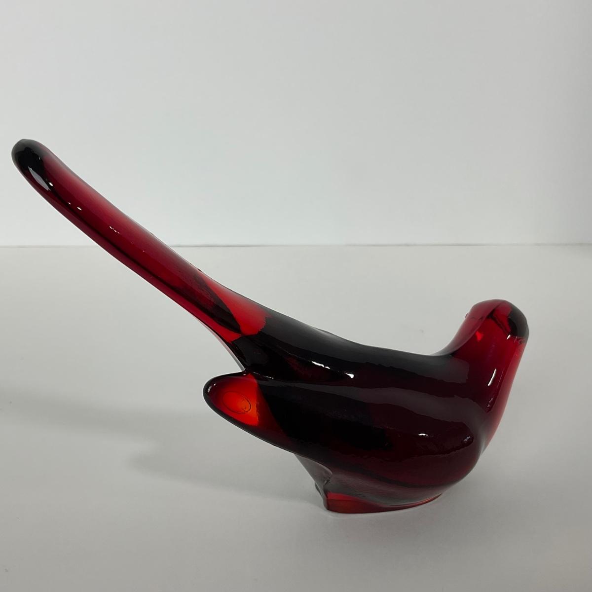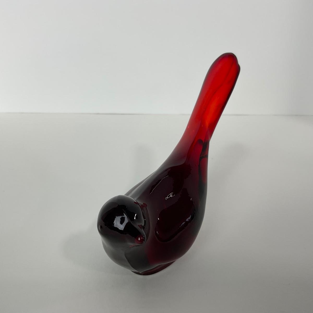-18- FENTON | Marked Ruby Red Happiness Bird Long Tail