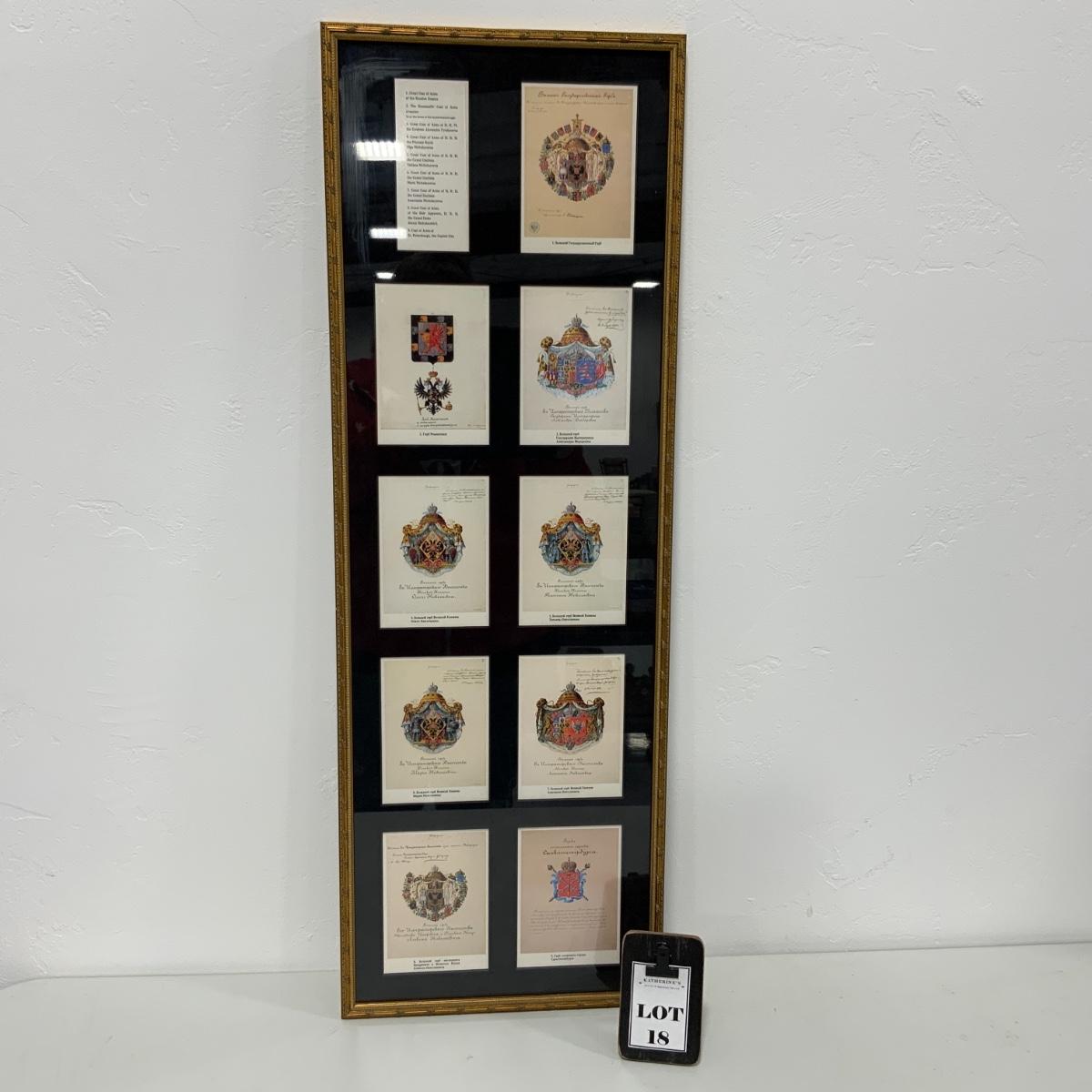 -18- Framed Russian Coat Of Arms Postcard Collection