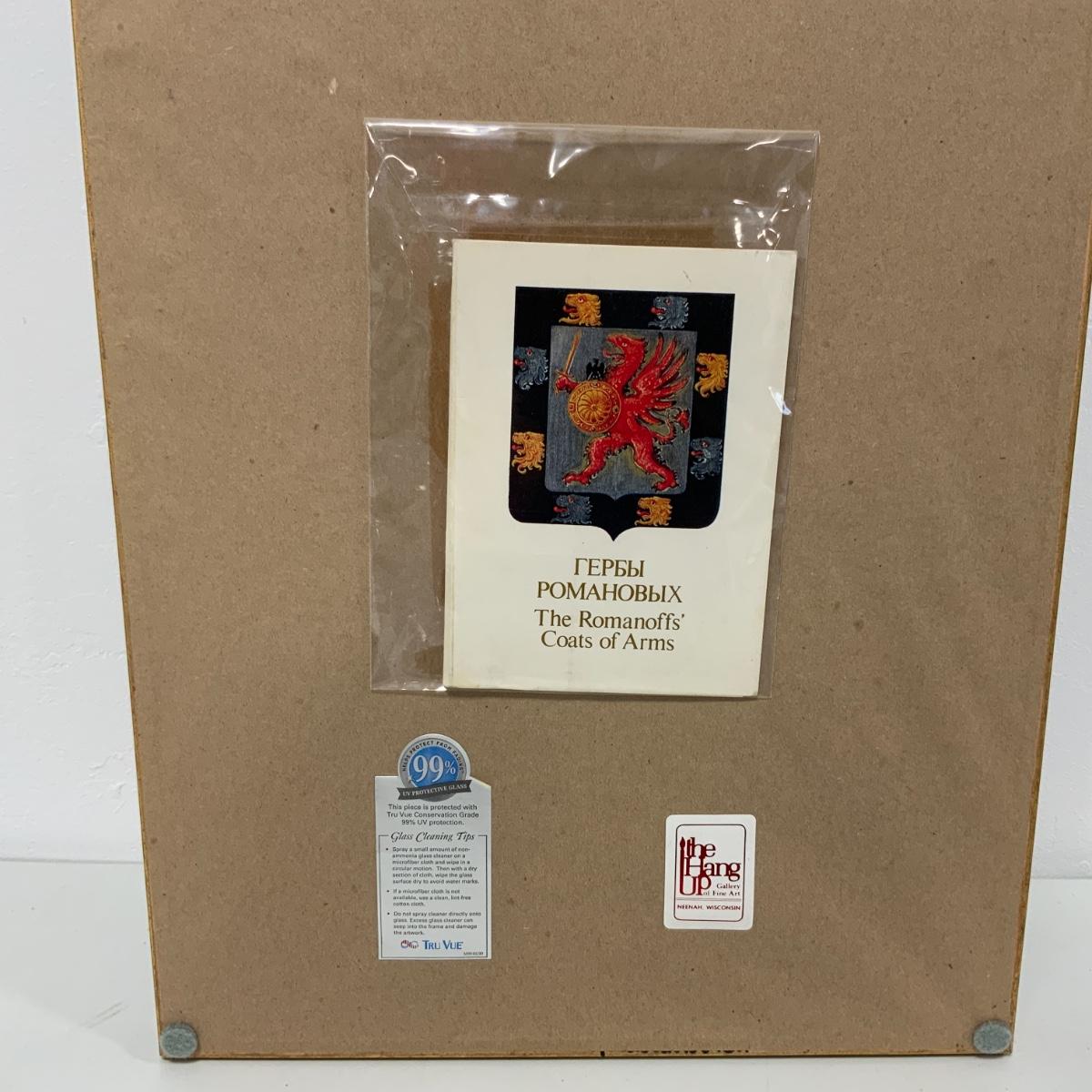 From the Estate of Peter Radovanovich: Beautifully Framed Postcard Collection with Coats of Arms from the Russian Empire. Conveniently has a translation in the top left corner for those of us that cannot read Russian. Framed under conservation glass by a reputable local frame shop. The reverse of the frame has an attachment with the folder that the postcards came in. Frame measures 36” tall and 12.25” wide. Please see photos for details and condition. ::: Shipping is available on this lot. If you require shipping you must let us know at the close of the auction. We will coordinate with you after the item has been won. Shipping fees will include insurance up to or exceeding the value of all items being mailed. If you have any questions regarding this lot please contact the auctioneer either via this website, by direct email or by phone. PICK UP TIMES and other important information can be found in the TERMS and DESCRIPTION of the auction. Please take a look for pertinent information. Thanks!