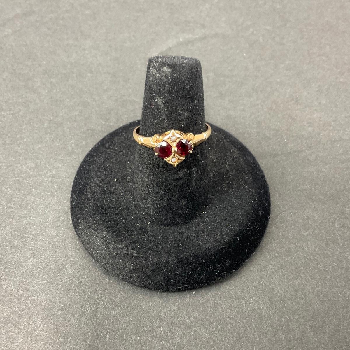 One vintage 14k gold with makers mark ruby red in color stone. This ring is a size 6 3/4. The total weight of this piece is 1.0 DWT. Please see photos for details and condition. Any condition statement is given as a courtesy to a client, is an opinion, and should not be treated as a statement of fact. Reference to condition written, oral or within a condition report shall not be regarded as a full account of condition and may not include all defects, alterations, or restorations. Absence of a condition report does not imply a lot is flawless or lacking imperfections or damage. Katherine’s Auction & Appraisal Service shall have no responsibility for any error or omission. Returns shall not be accepted on the basis of condition. ::: Shipping is available on this lot. If you require shipping you must let us know at the close of the auction. We will coordinate with you after the item has been won. Shipping fees will include insurance up to or exceeding the value of all items being mailed. If you have any questions regarding this lot please contact the auctioneer either via this website, by direct email or by phone. PICK UP TIMES and other important information can be found in the TERMS and DESCRIPTION of the auction. Please take a look for pertinent information. Thanks!