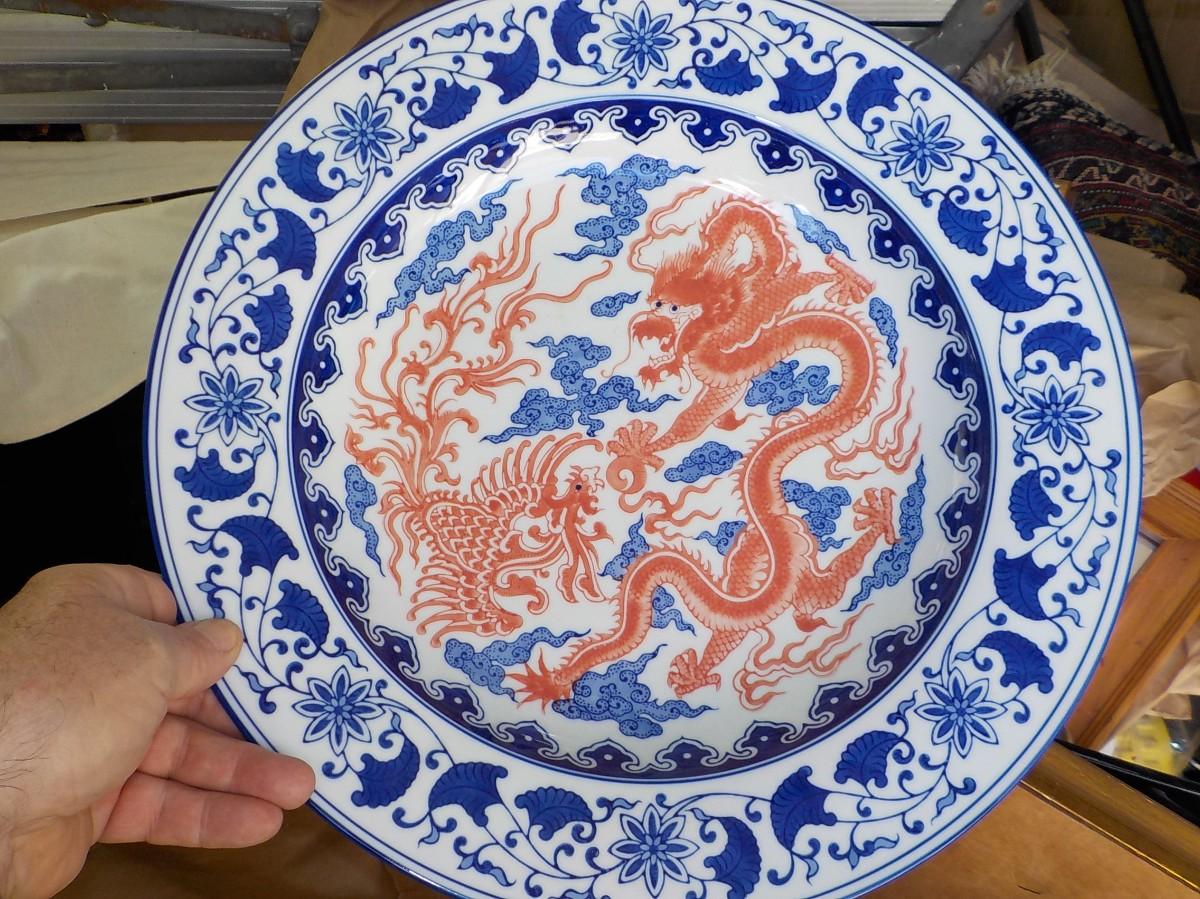 18 INCH HAND PAINTED CHINNESE Porcelain Platter. Deco only and no food.
