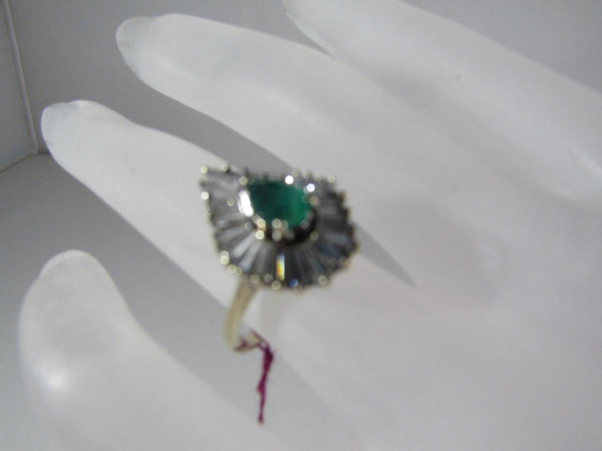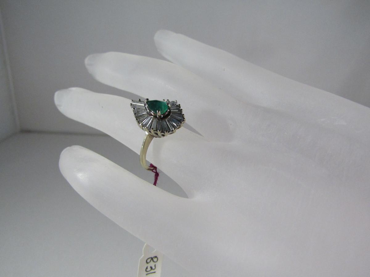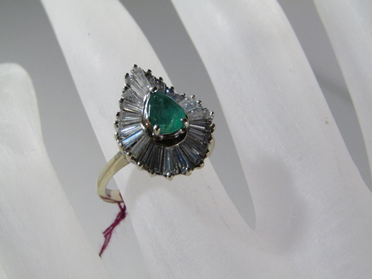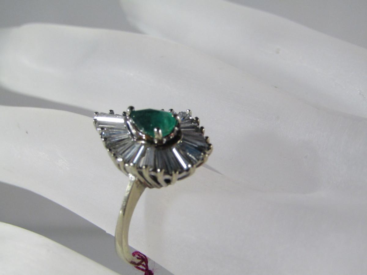 18 Kt White Gold Emerald and Diamond Ring- Size 4 1/2- Approx Weight 3.5 grams (#29)