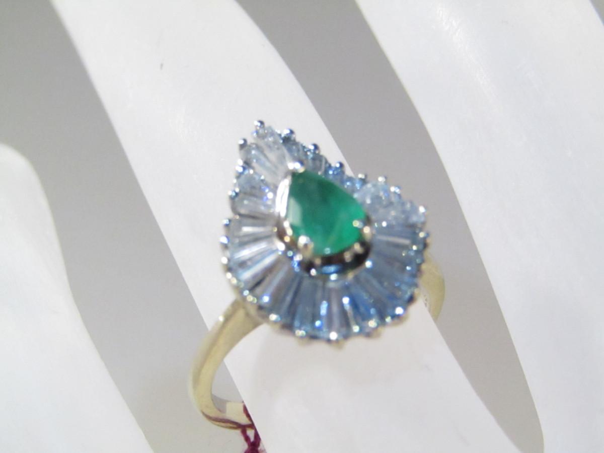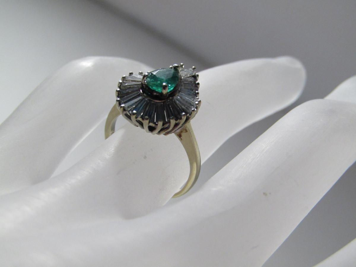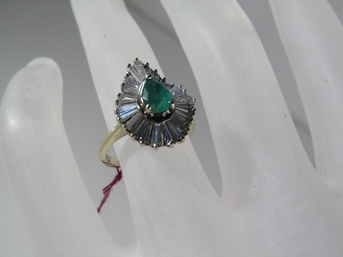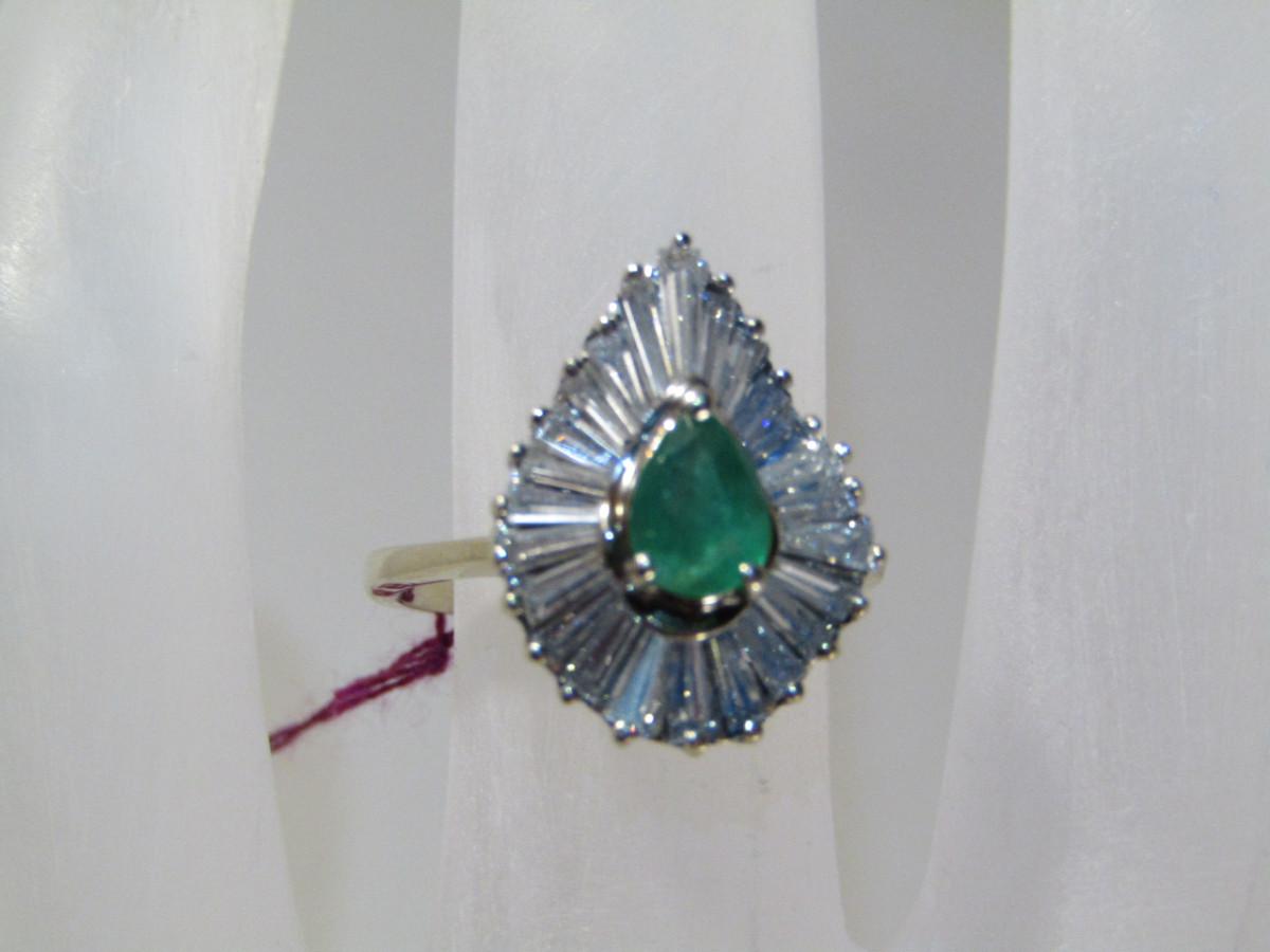 18 Kt White Gold Emerald and Diamond Ring- Size 4 1/2- Approx Weight 3.5 grams (#29)