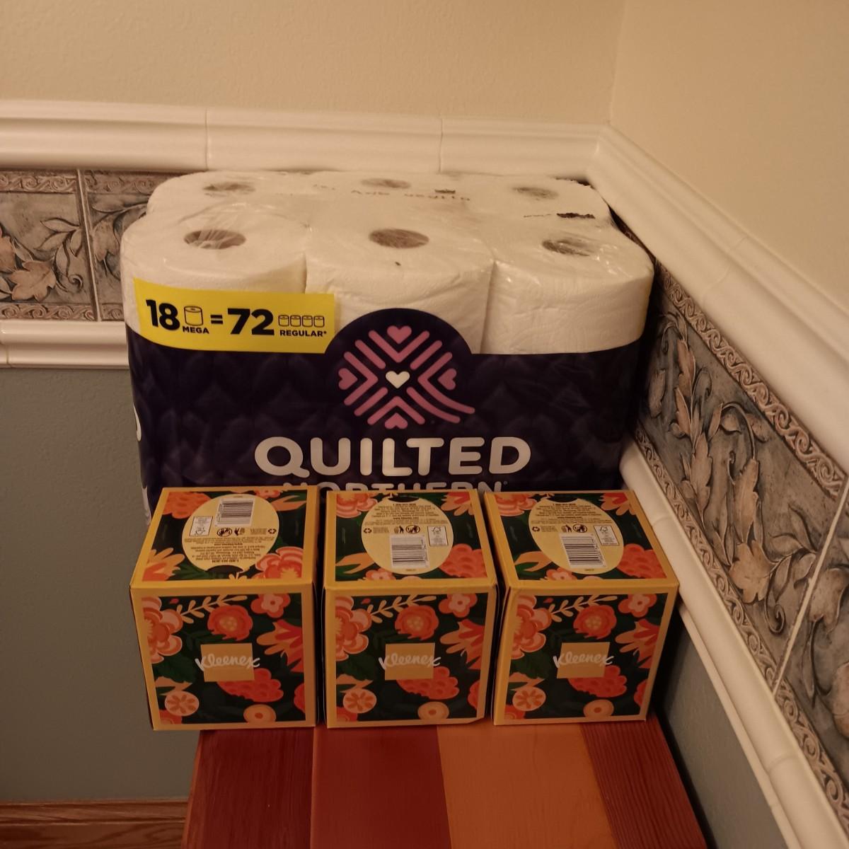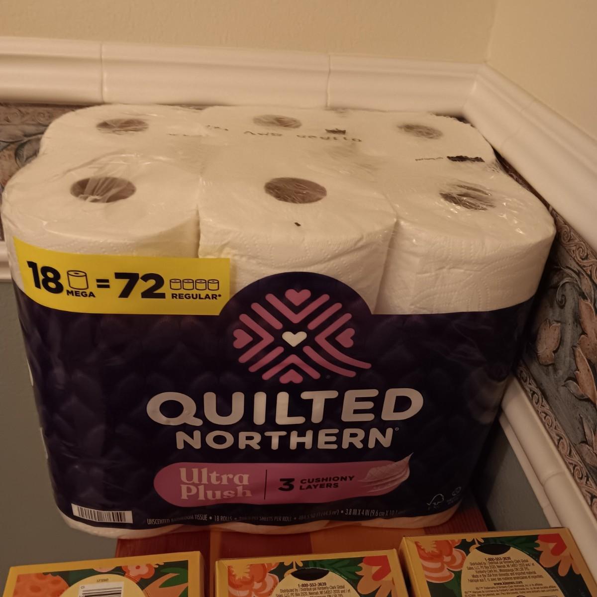 18 MEGA ROLLS OF QUILTED NOTHERN TOILET PAPER AND 3 UNOPENED BOXES OF KLEENEX