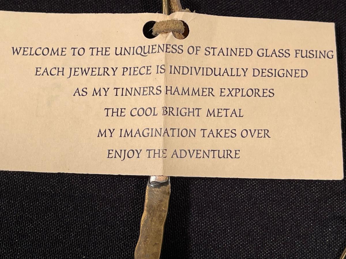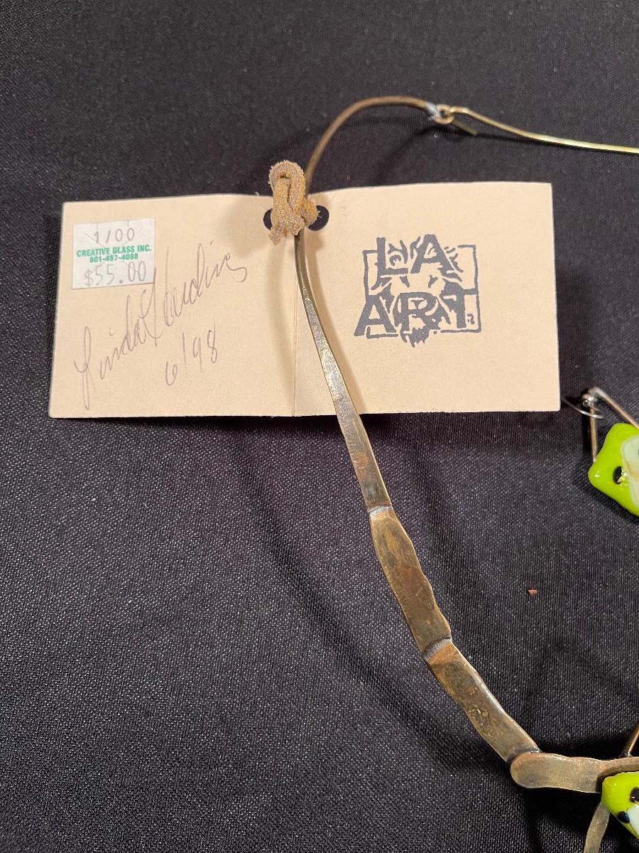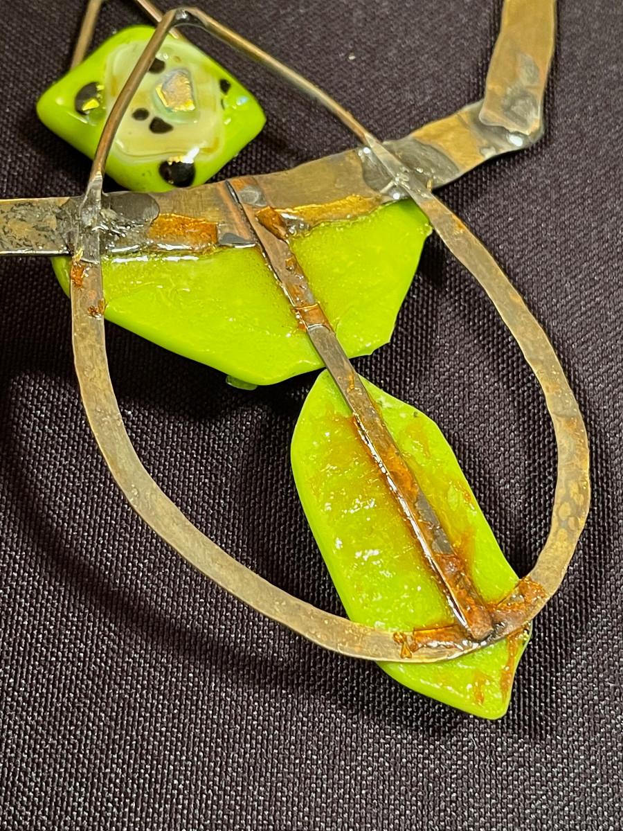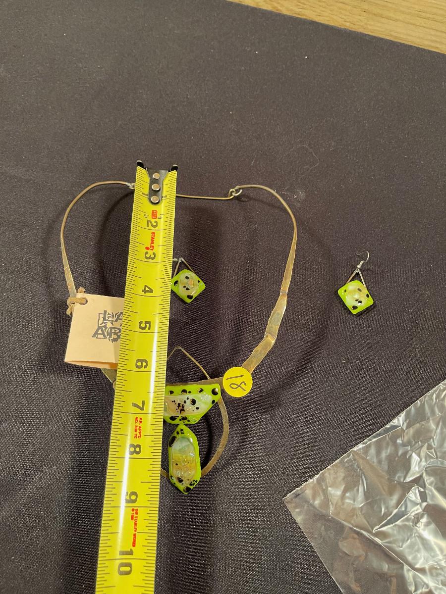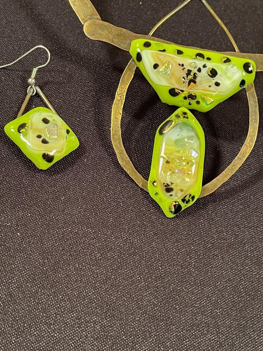 #18 Necklace and Earrings; Glass fused to Bronze