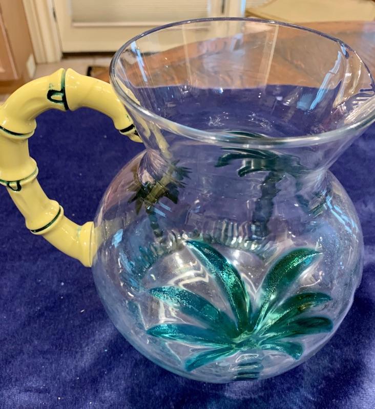 “¢1 Large Bamboo Handle /Palm Tree Plastic Pitcher