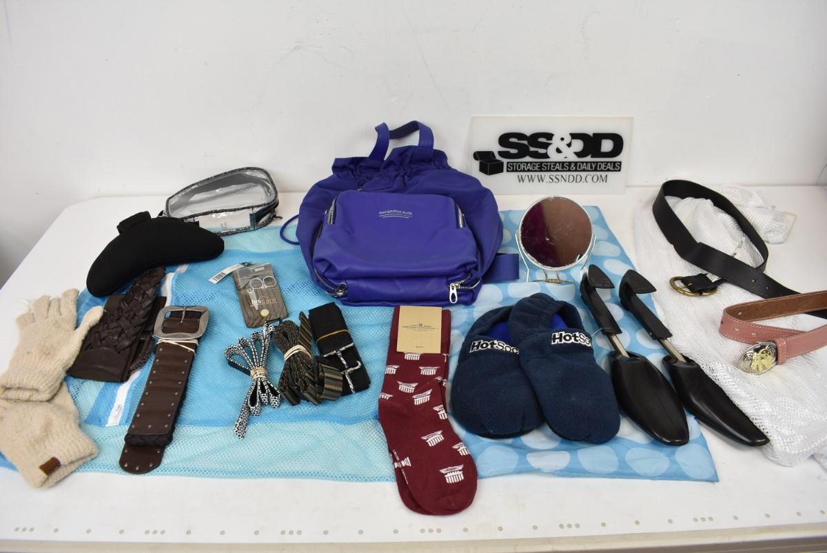 18 pc Personal Care & Accessories: Belts, Bag Straps, 2 laundry bags, Hot Socks, Gloves