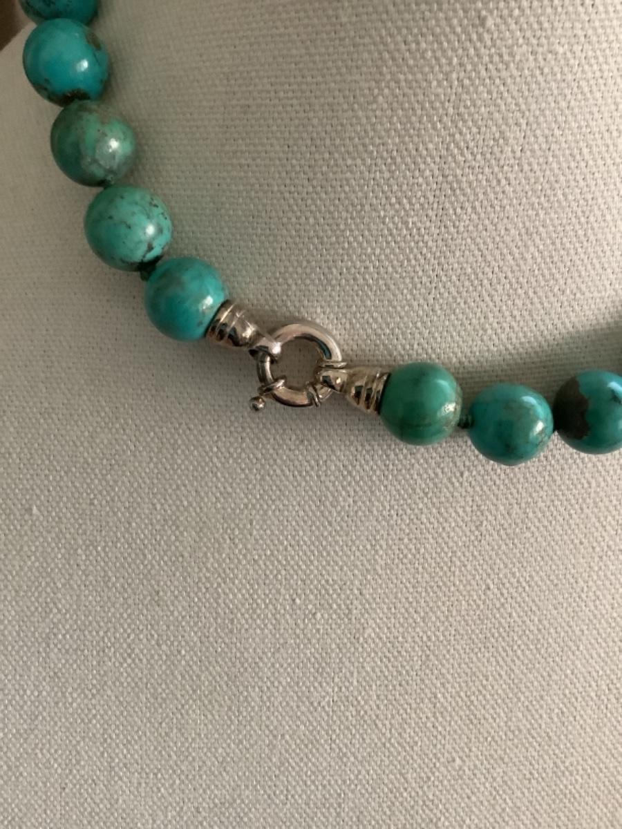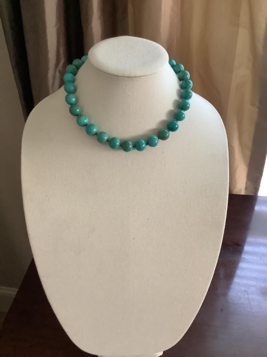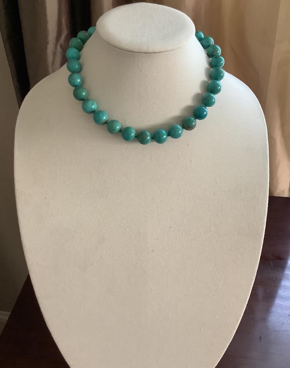 18” Turquoise Round Beaded Strand Necklace with Sterling Silver Clasp