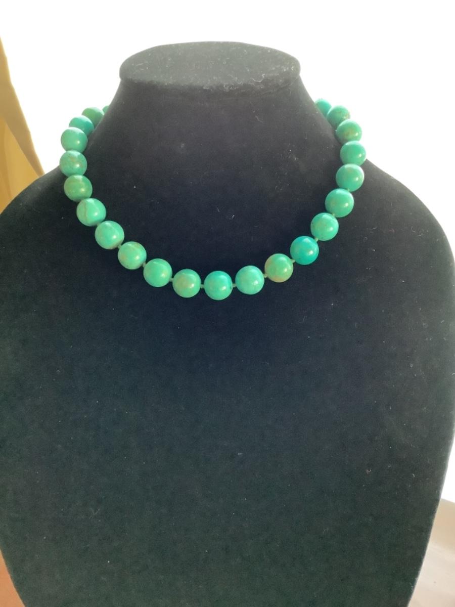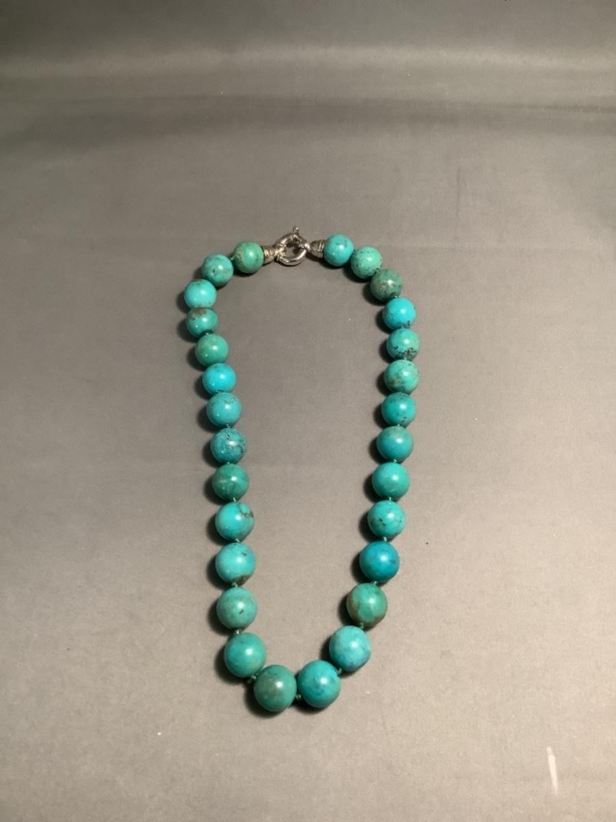 I/C1. 1372  18” Turquoise Round Beaded Strand Necklace with Sterling Silver Clasp