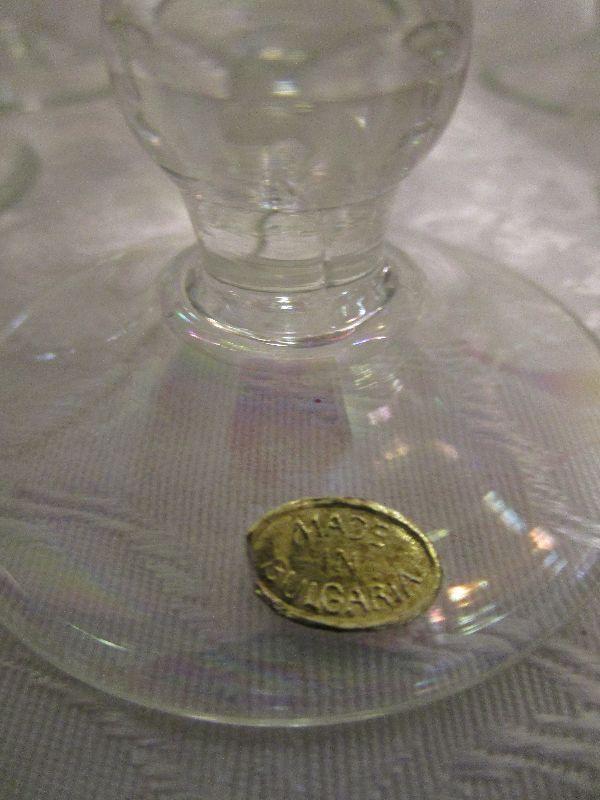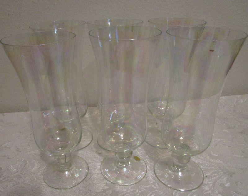 Six iridescent parfait glasses made in Bulgaria. 6.5" tall
