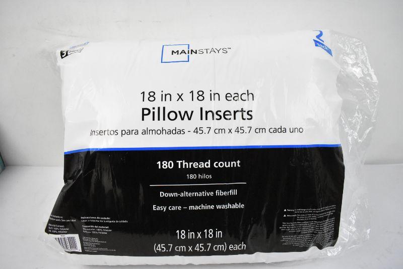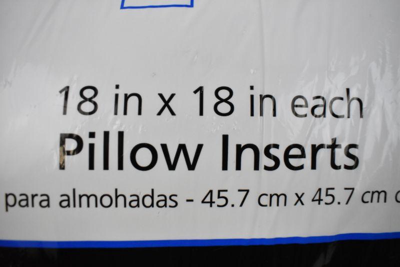 18" x 18" Pillow Inserts by Mainstays, 100% Polyester Set of 2 - New