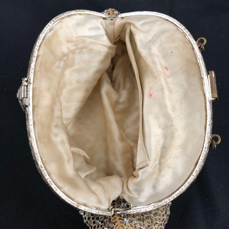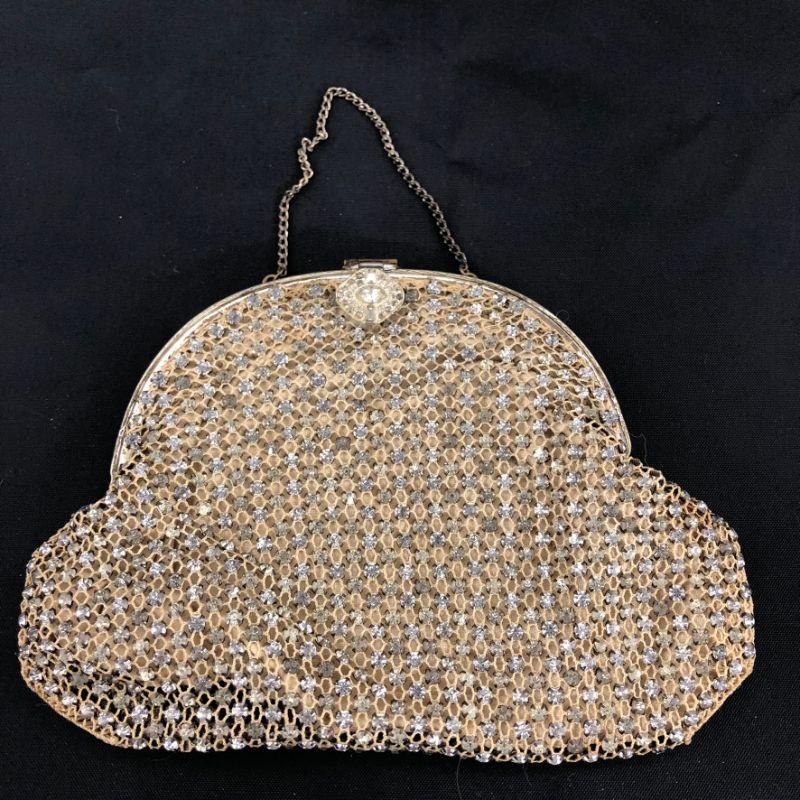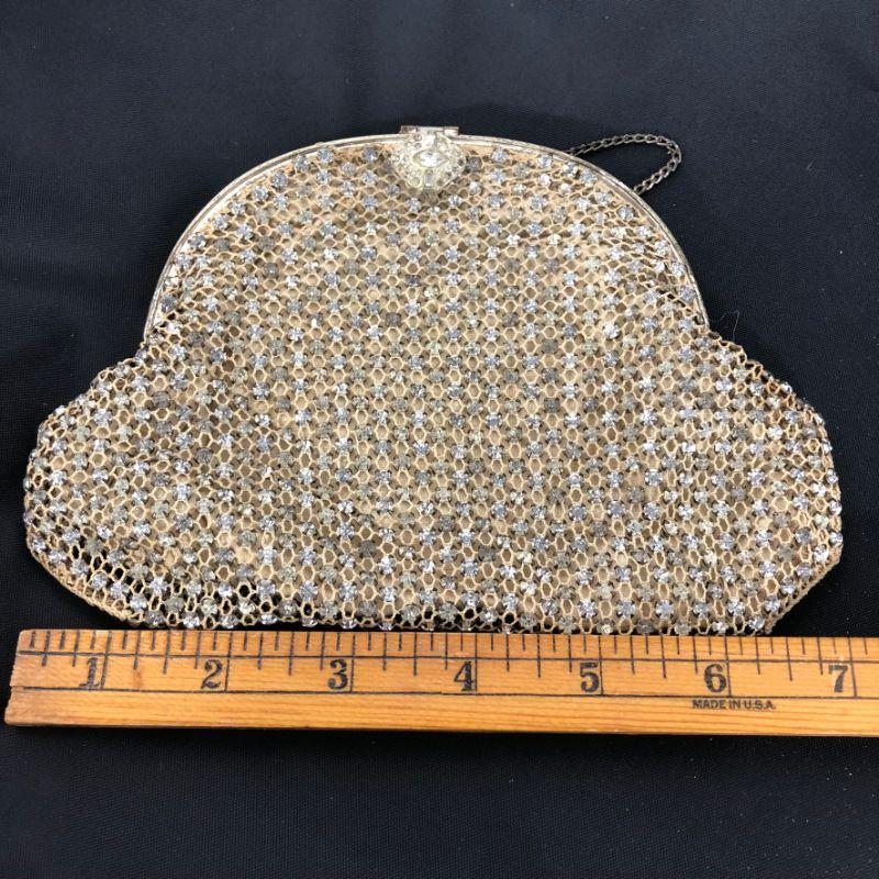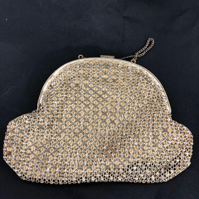 Maybe this bag is shaped like a cloud because you'll feel like you're walking on them when you use this bag. Some yellowing due to its age, but this beautiful Art Deco Rhinestone Evening Bag has no superior. No repairs or missing stones noted.
