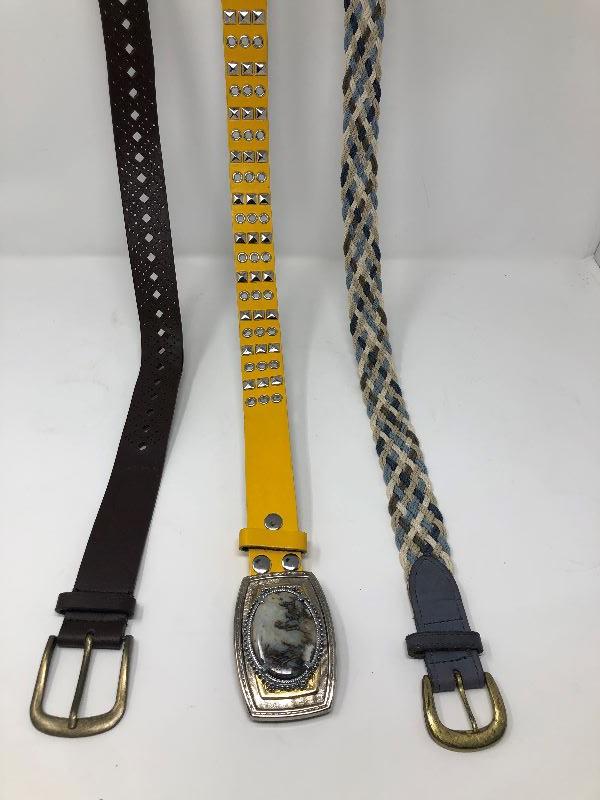 3 cute women's belts shortest measures 41". Includes very nice hand crafted polished stone buckle.