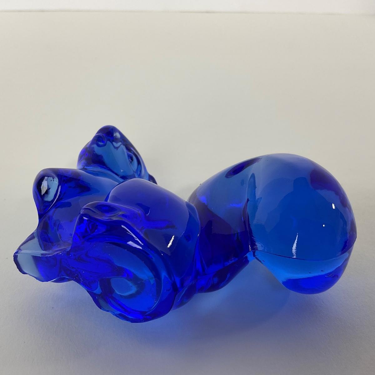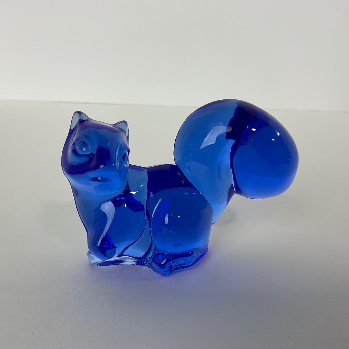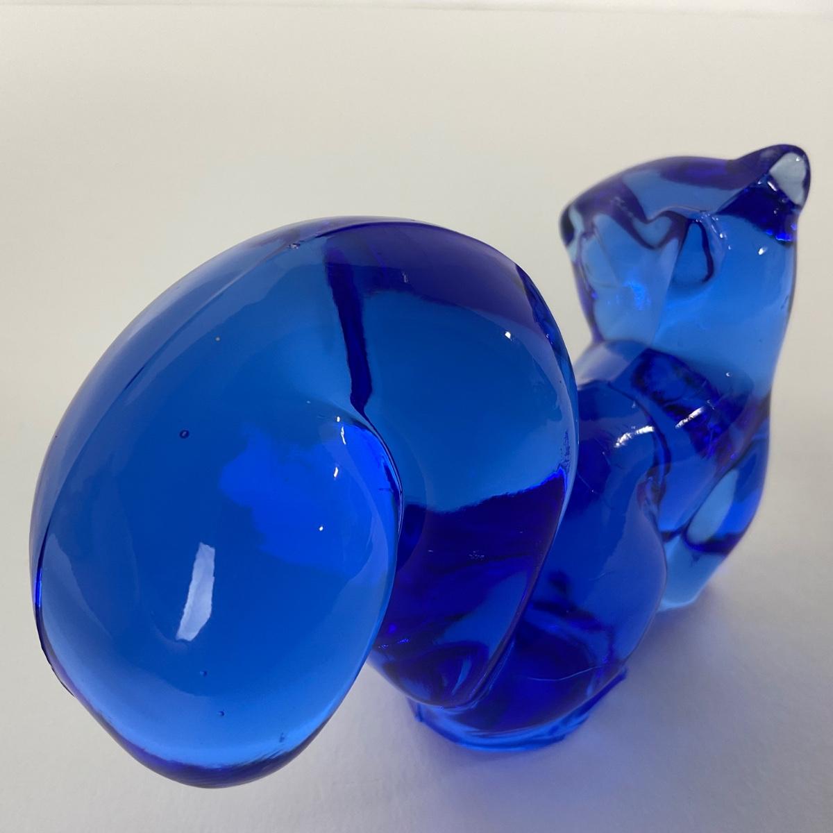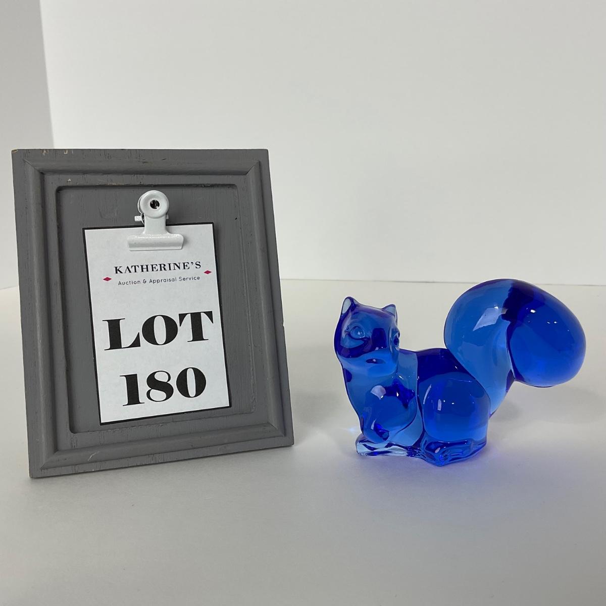 One Fostoria blue squirrel stretched out. 2 1/2 inches tall by 4 inches wide. This piece does have a few flea bit chips but otherwise appears to be in good condition. Please see photos for details and condition. Any condition statement is given as a courtesy to a client, is an opinion, and should not be treated as a statement of fact. Reference to condition written, oral or within a condition report shall not be regarded as a full account of condition and may not include all defects, alterations, or restorations. Absence of a condition report does not imply a lot is flawless or lacking imperfections or damage. Katherine’s Auction & Appraisal Service shall have no responsibility for any error or omission. Returns shall not be accepted on the basis of condition. ::: Shipping is available on this lot. If you require shipping you must let us know at the close of the auction. We will coordinate with you after the item has been won. Shipping fees will include insurance up to or exceeding the value of all items being mailed. If you have any questions regarding this lot please contact the auctioneer either via this website, by direct email or by phone. PICK UP TIMES and other important information can be found in the TERMS and DESCRIPTION of the auction. Please take a look for pertinent information. Thanks!