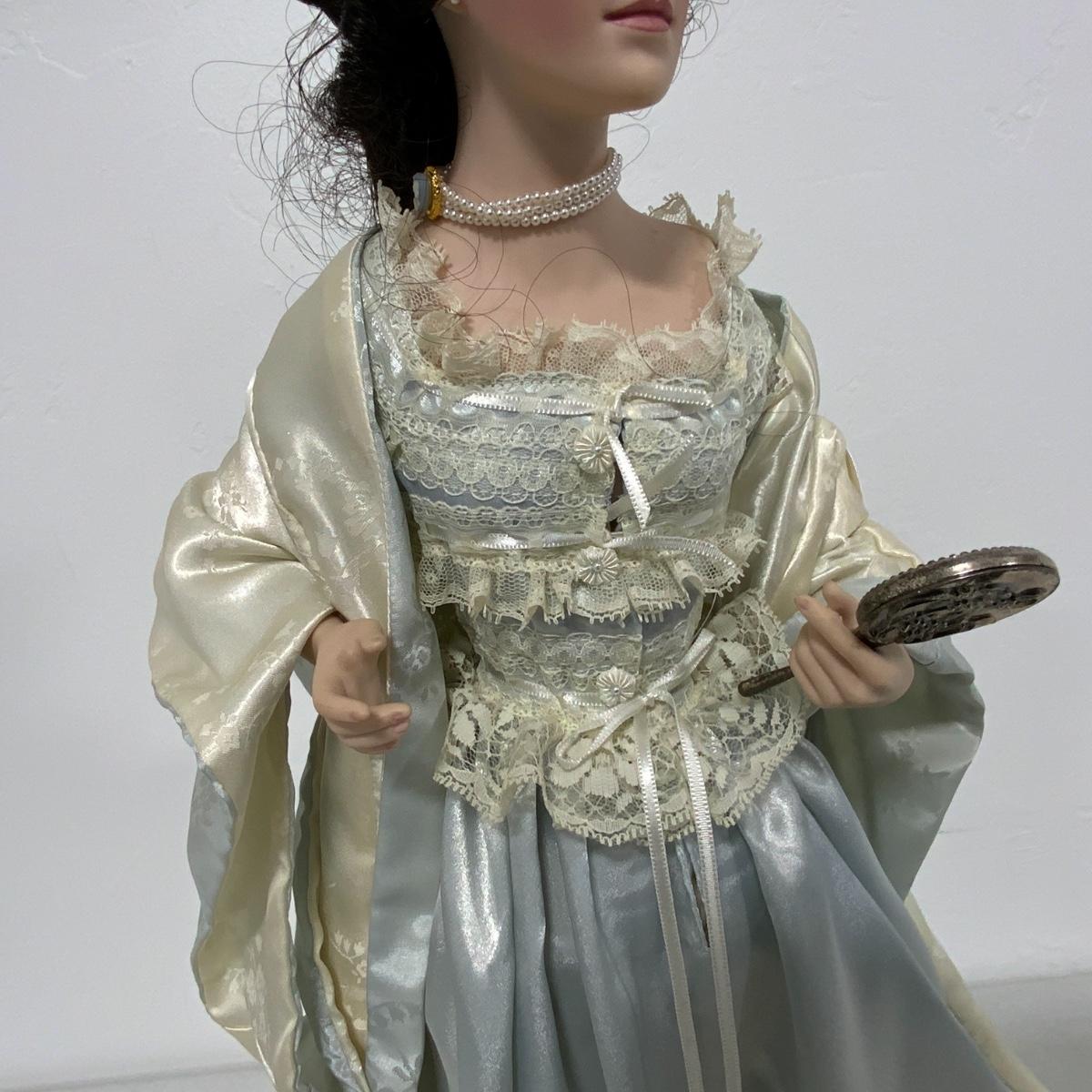 From the Estate of Peter and Alice Radovanovich: Maybe the sauciest girl in the auction. This is a Franklin Mint Heirloom Doll, from the Gibson Girl Collection, specifically the Boudoir girl. Stands 22 inches tall, comes with stand and pamphlet seen in photos. Please see photos for details and condition. ::: Shipping is NOT available on this lot. If you have any questions regarding this lot please contact the auctioneer either via this website, by direct email or by phone. PICK UP TIMES and other important information can be found in the TERMS and DESCRIPTION of the auction. Please take a look for pertinent information. Thanks!