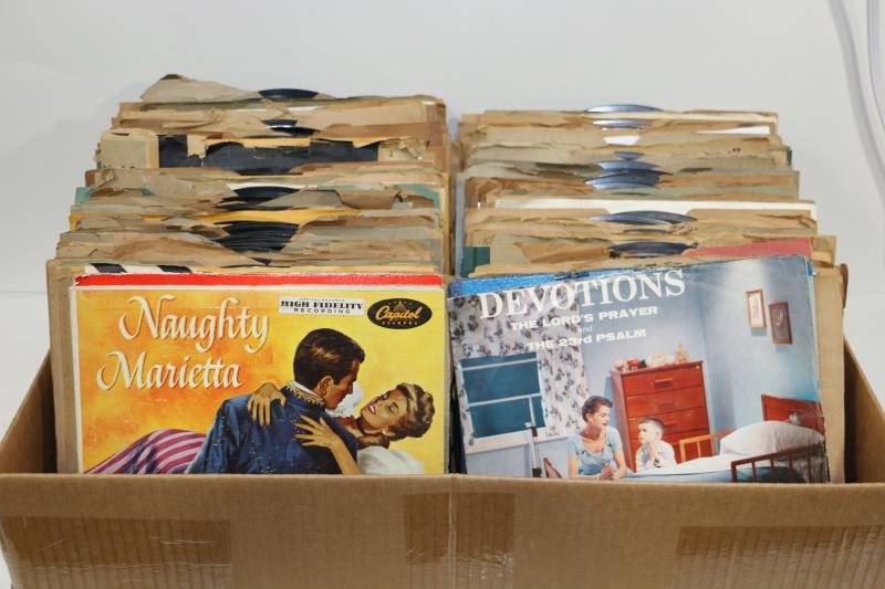 Lot of 180 vintage 78 rpm records, mixed genres, condition good to very good to excellent, as seen on pictures.