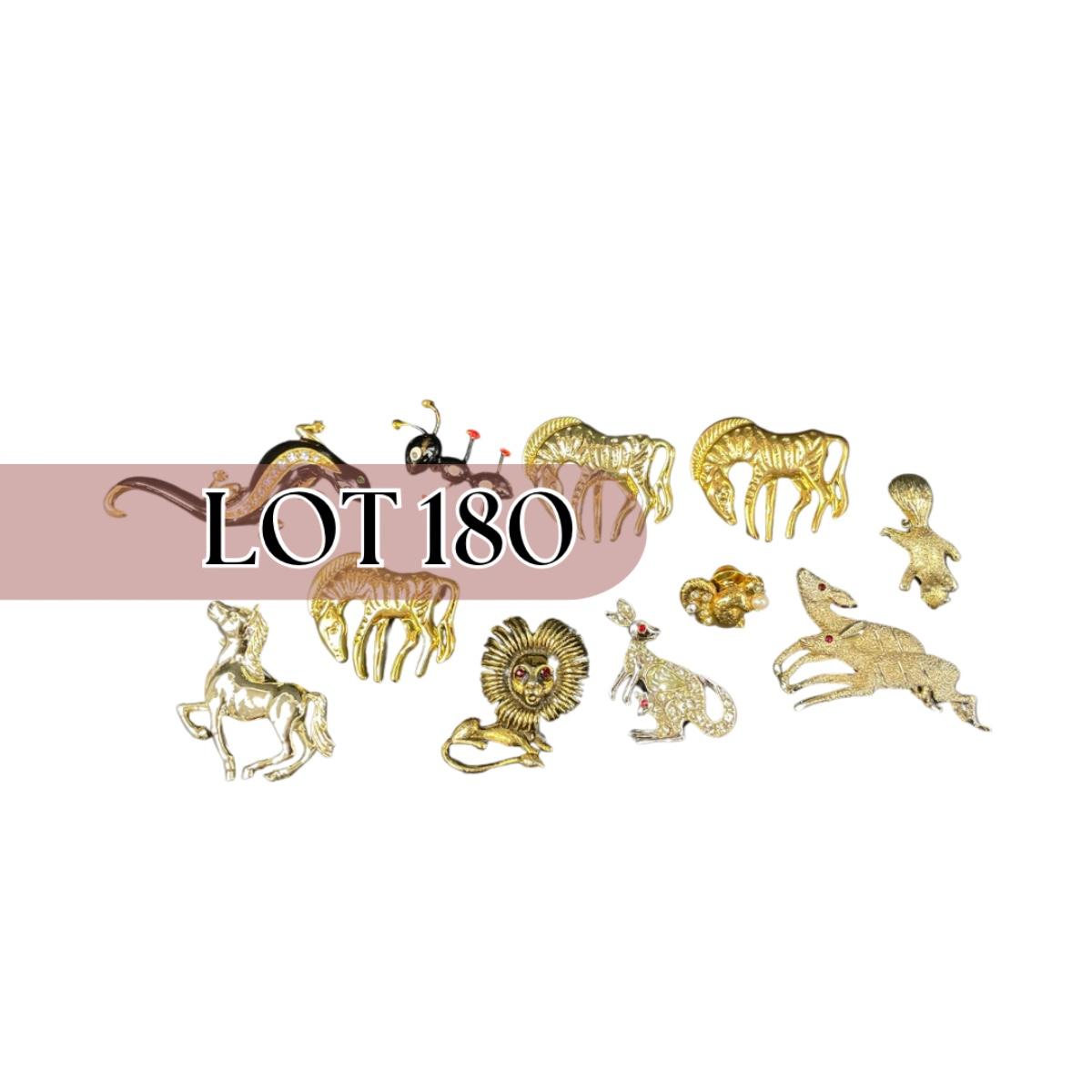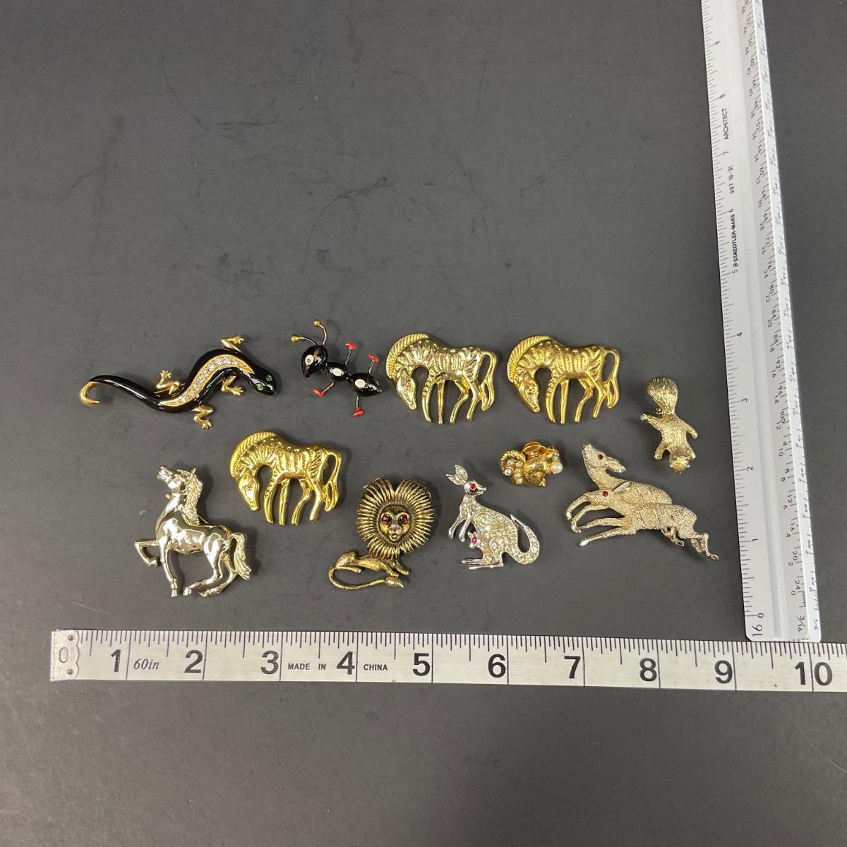 11 assorted vintage animal brooches some marked pieces include Gerry, BSK, and Avon. Other pieces are unmarked. Please see photos for details and condition. Any condition statement is given as a courtesy to a client, is an opinion, and should not be treated as a statement of fact. Reference to condition written, oral or within a condition report shall not be regarded as a full account of condition and may not include all defects, alterations, or restorations. Absence of a condition report does not imply a lot is flawless or lacking imperfections or damage. Katherine’s Auction & Appraisal Service shall have no responsibility for any error or omission. Returns shall not be accepted on the basis of condition. ::: Shipping is available on this lot. If you require shipping you must let us know at the close of the auction. We will coordinate with you after the item has been won. Shipping fees will include insurance up to or exceeding the value of all items being mailed. If you have any questions regarding this lot please contact the auctioneer either via this website, by direct email or by phone. PICK UP TIMES and other important information can be found in the TERMS and DESCRIPTION of the auction. Please take a look for pertinent information. Thanks!