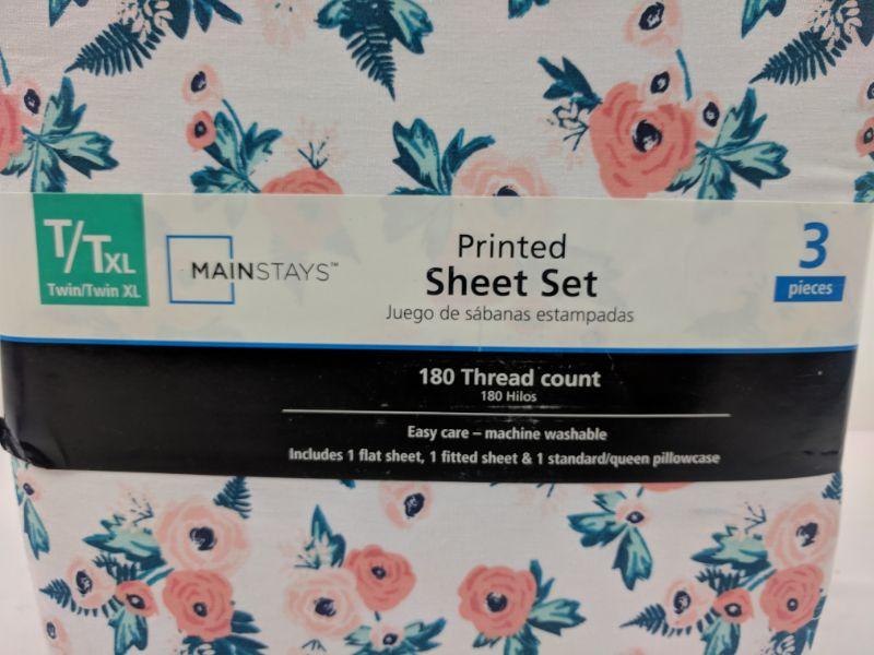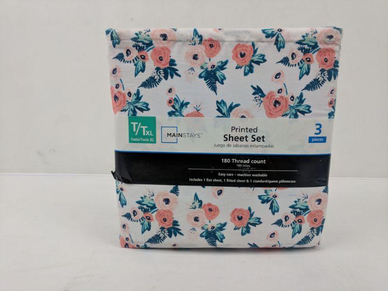 180 Thread Count Twin/Twin XL Floral 3 pc Sheet Set - New