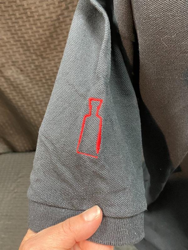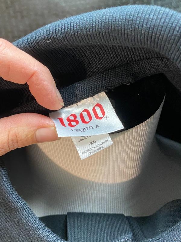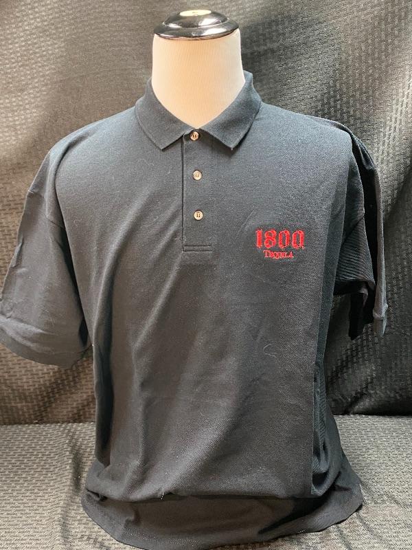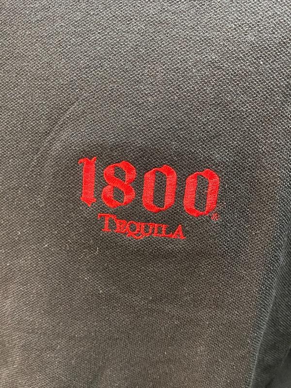 1800 Tequila embroidered polo shirt. Black with red stitching. Size large.