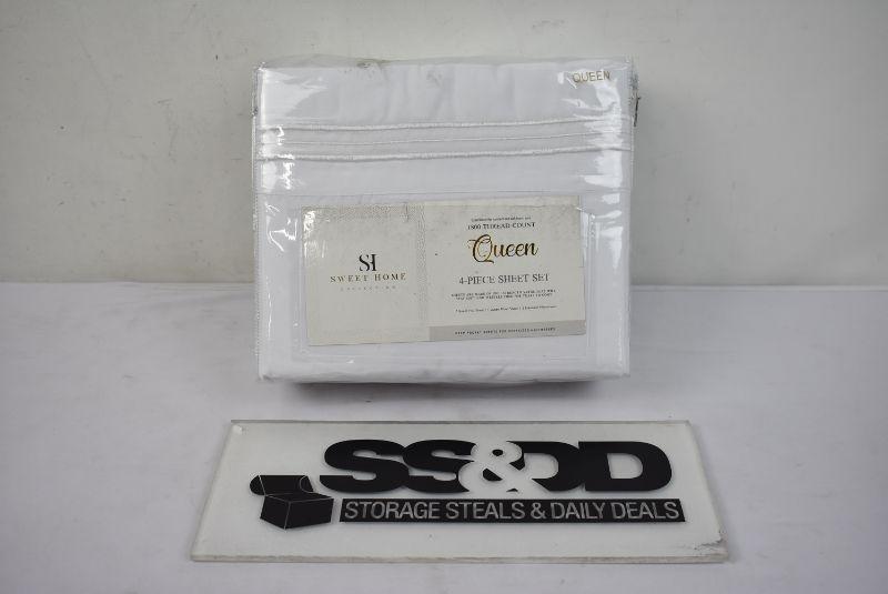 1800 Thread Count 4 Piece Deep Pocket Bedroom Bed Sheet Set Queen - White - New