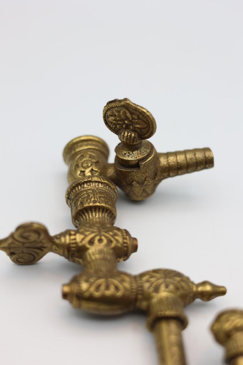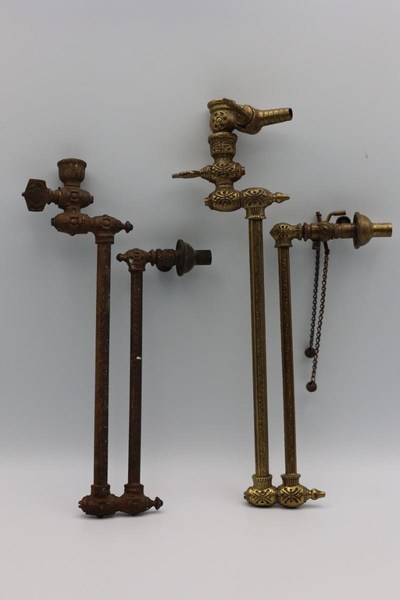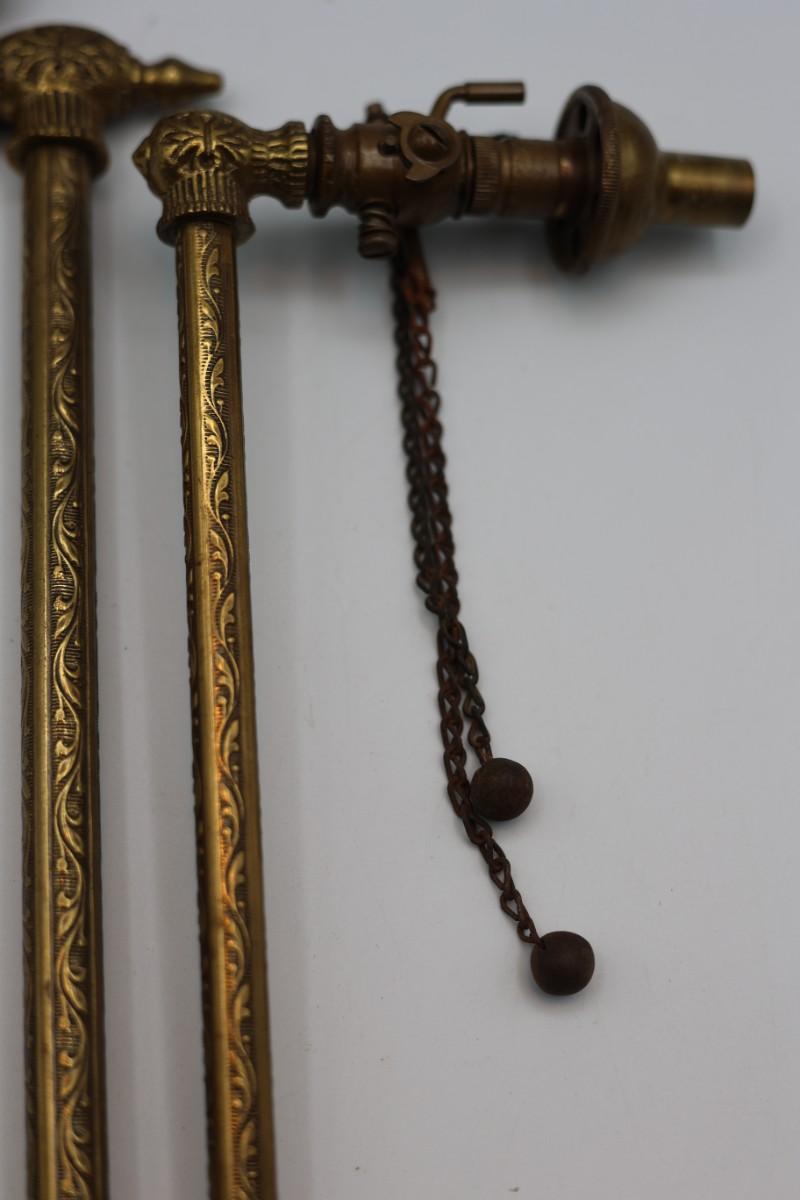 Two antique brass gas light fixtures
