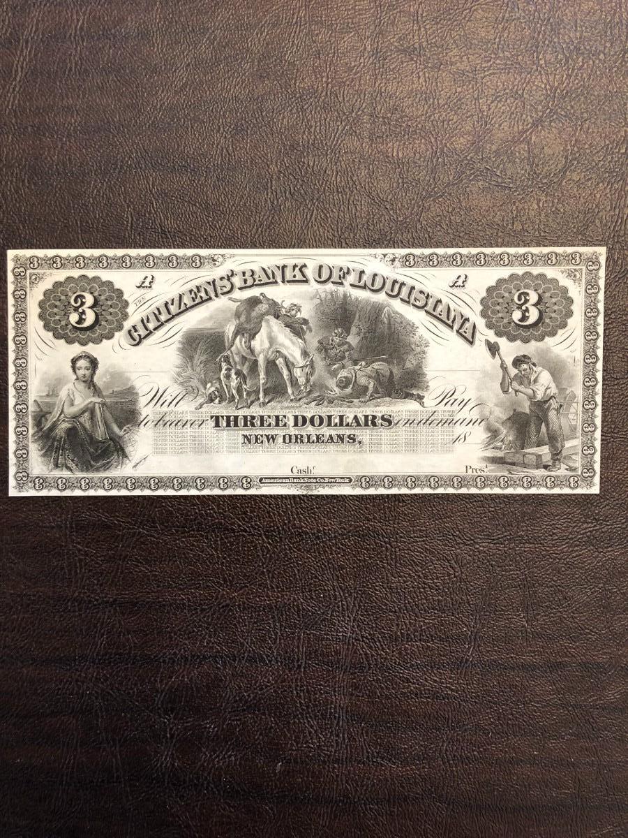 1800'S CITIZENS' BANK OF LOUISIANA, $3