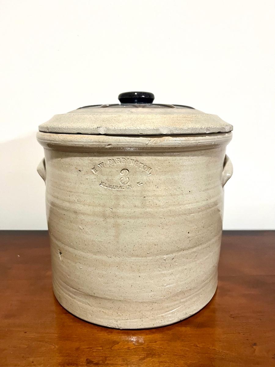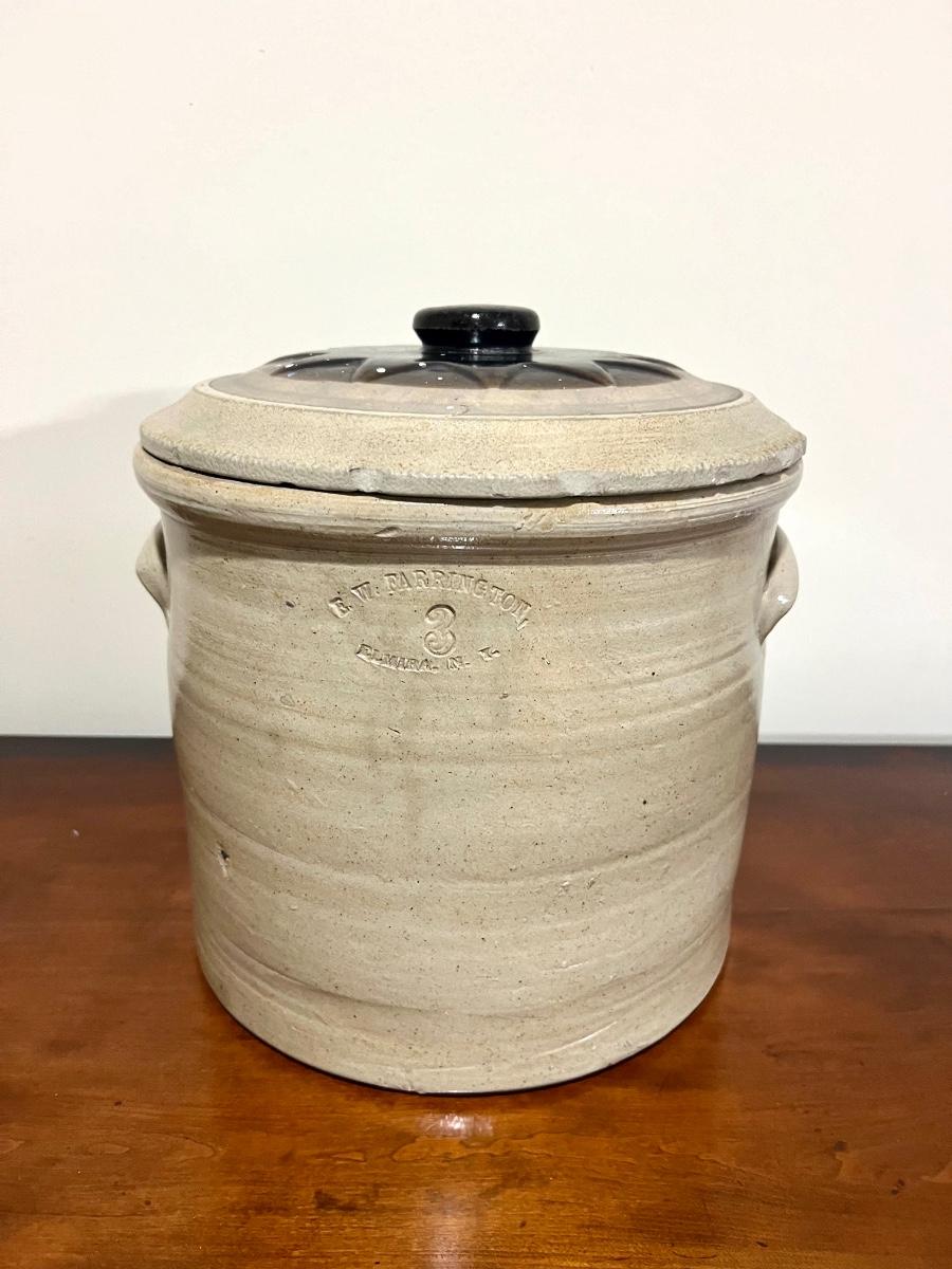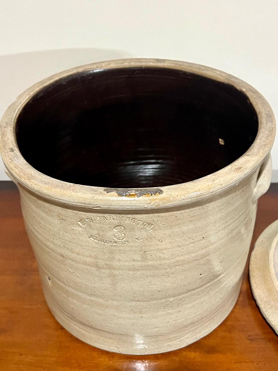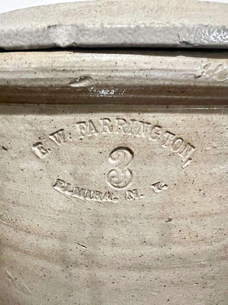 1800s E. W. FARRINGTON #3 Stone Ware Crock With Lid