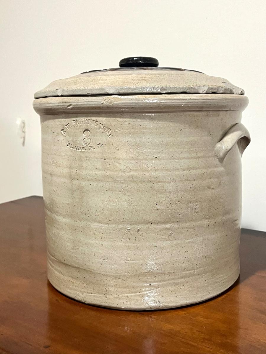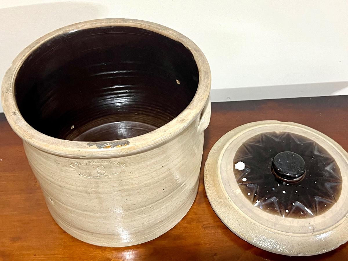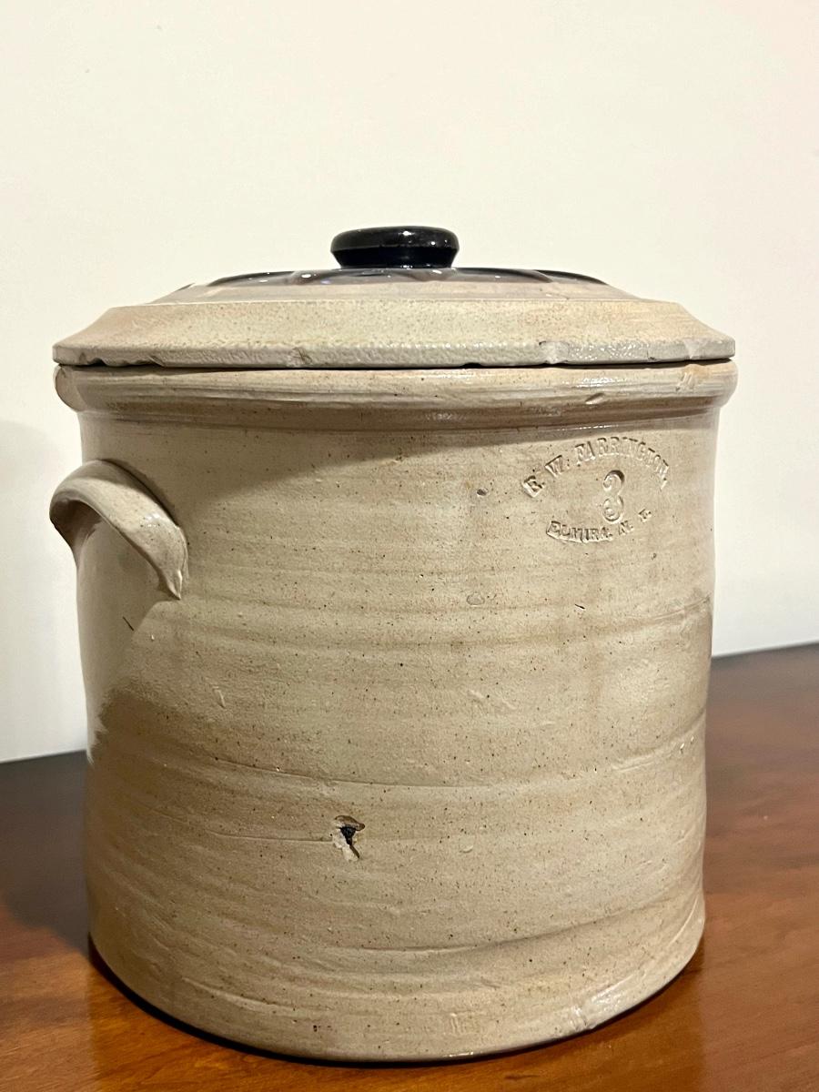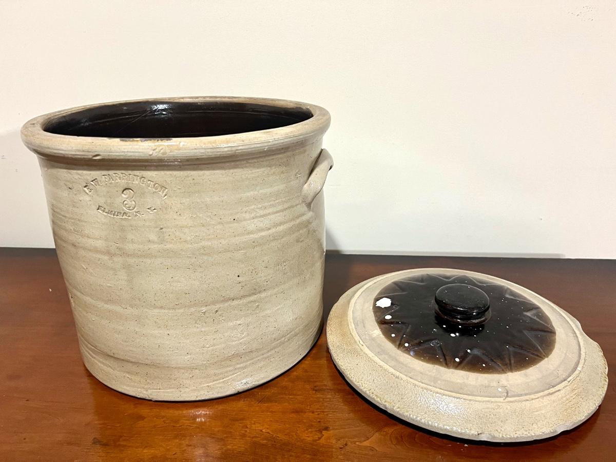 1800s E. W. FARRINGTON #3 Stone Ware Crock With Lid
