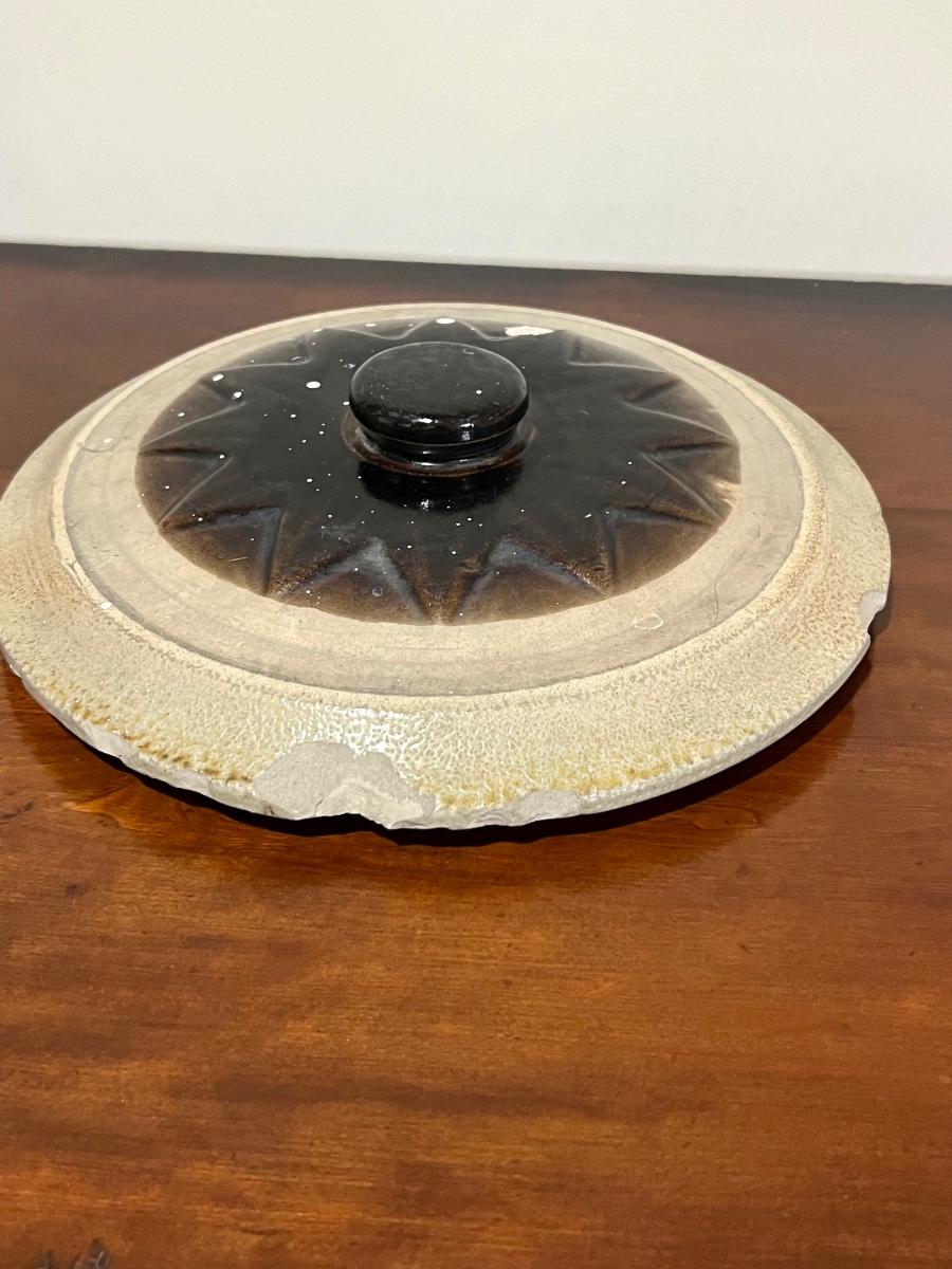 1800s E. W. FARRINGTON Elmira NY Stone Ware Crock With Lid. Measures with lid on 12 inches tall approximately 12 inches round. Lid has several chips and discolored paint. Crock has some chips and imperfections as well. Please note pictures of the exact condition.