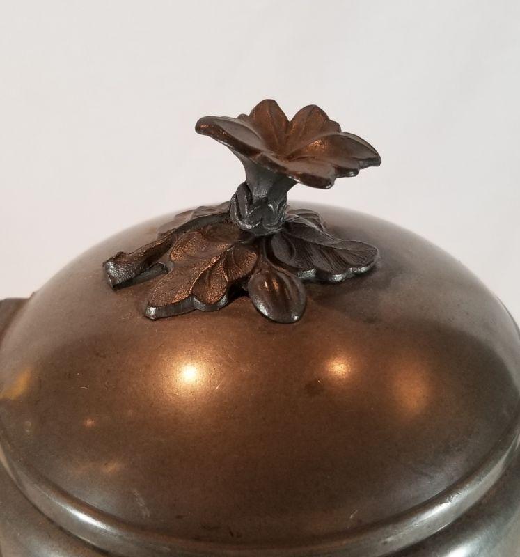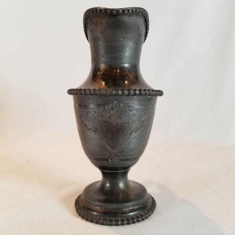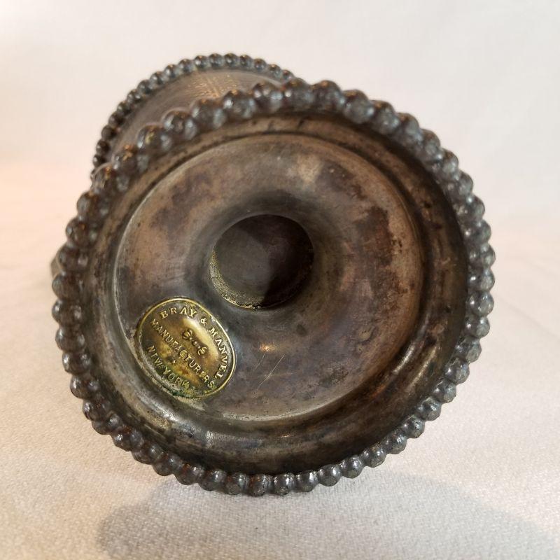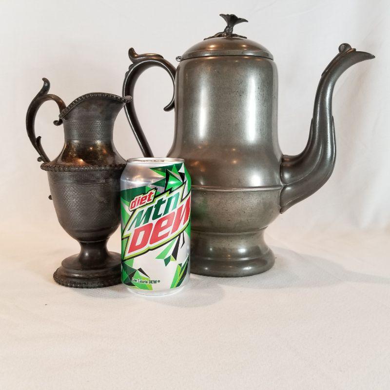 1800’s Antique Pewter Ware. The large coffee pot was handmade in Cincinnati by R Homan who worked there from 1852-1862. Marked R. Homan. 11-inches tall. Damage and repair to bottom, otherwise patina and wear consistent with age. TAdditionally we are adding to this lot a nice fancy small pitcher or creamer. Circa 1820. Marked with a brass plate on bottom “Bray & Manvel Manufacturing Co. ““ New York. No dents. Patina and wear consistence with age.