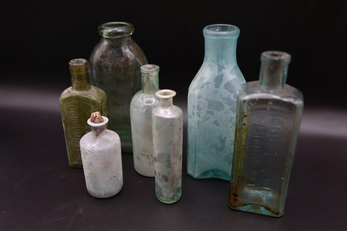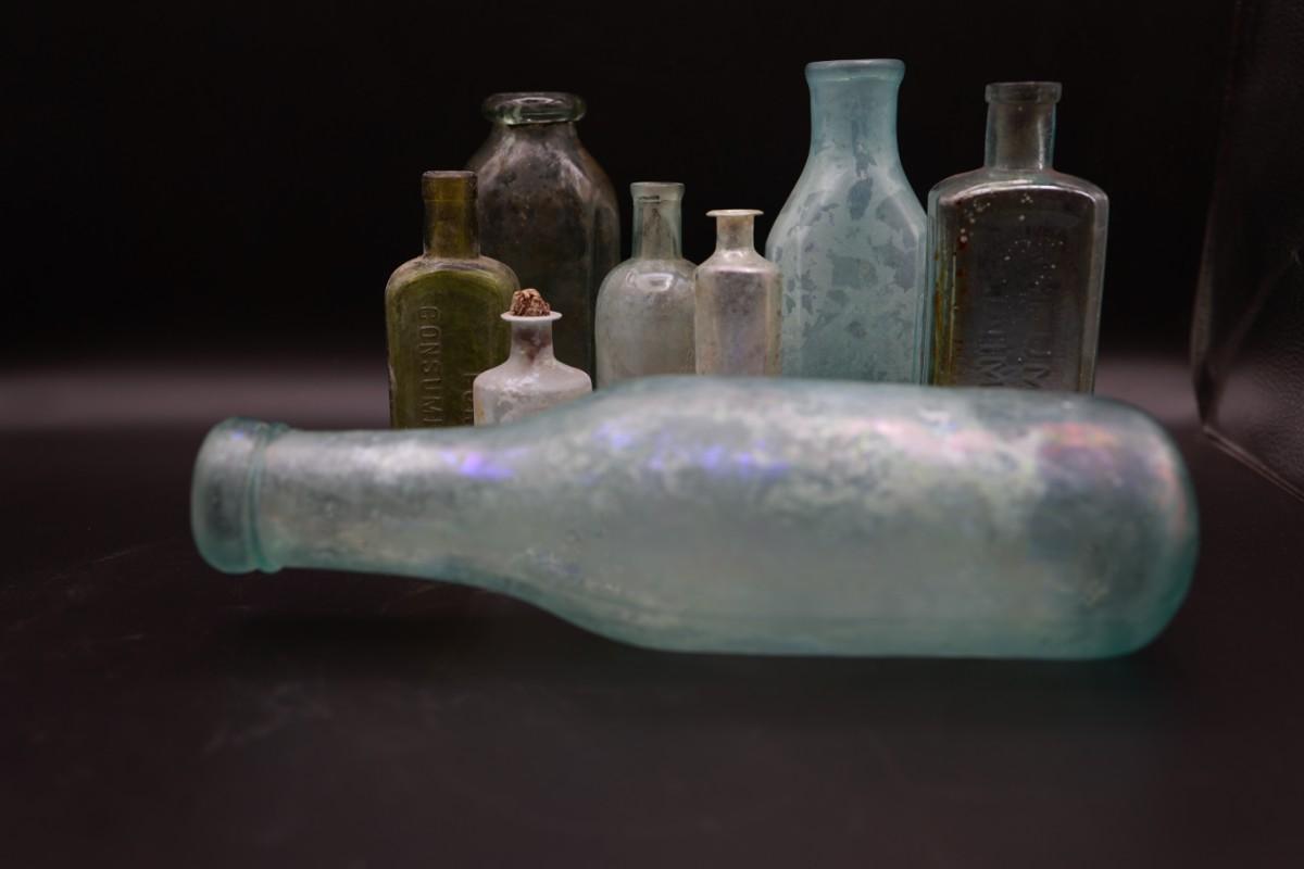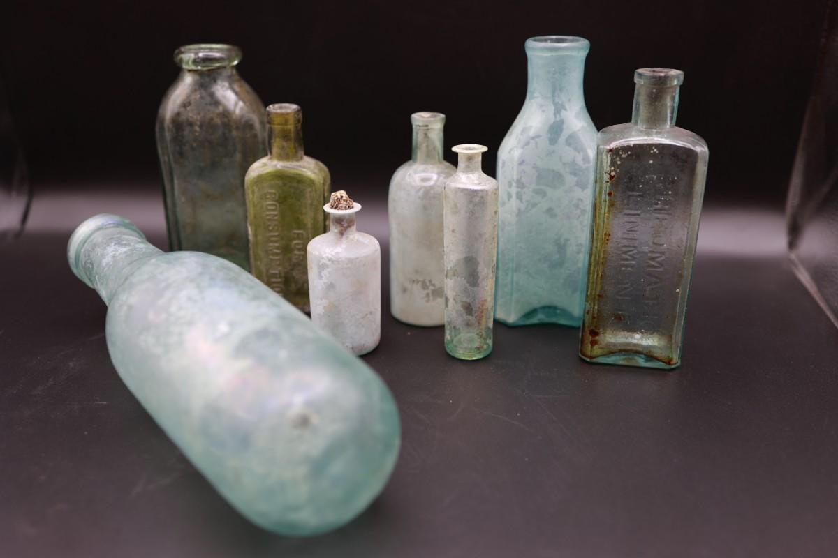 1800s Round Bottom Bottle & Assortment of Antique Bottles