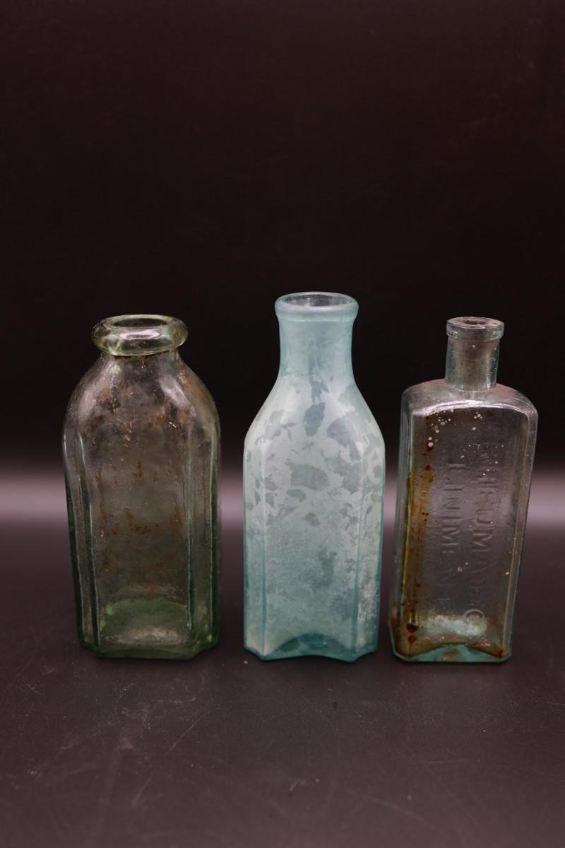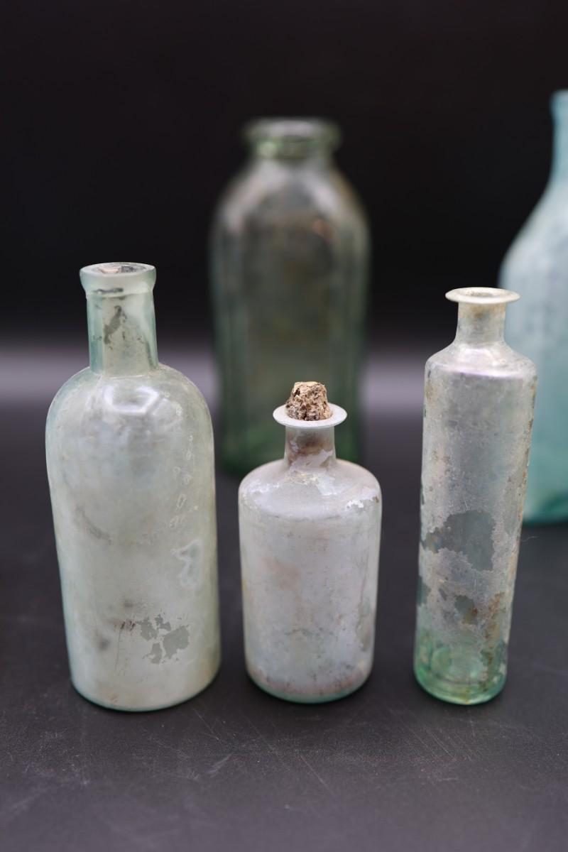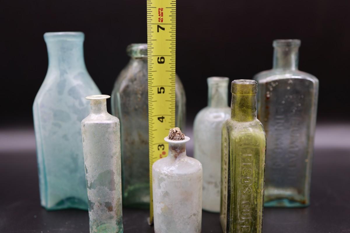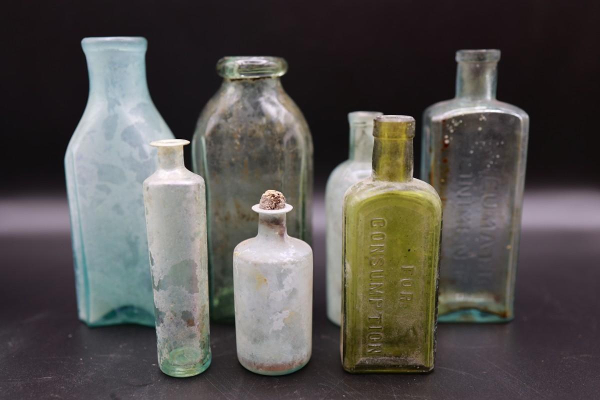 1800s Round Bottom Bottle & Assortment of Antique Bottles
