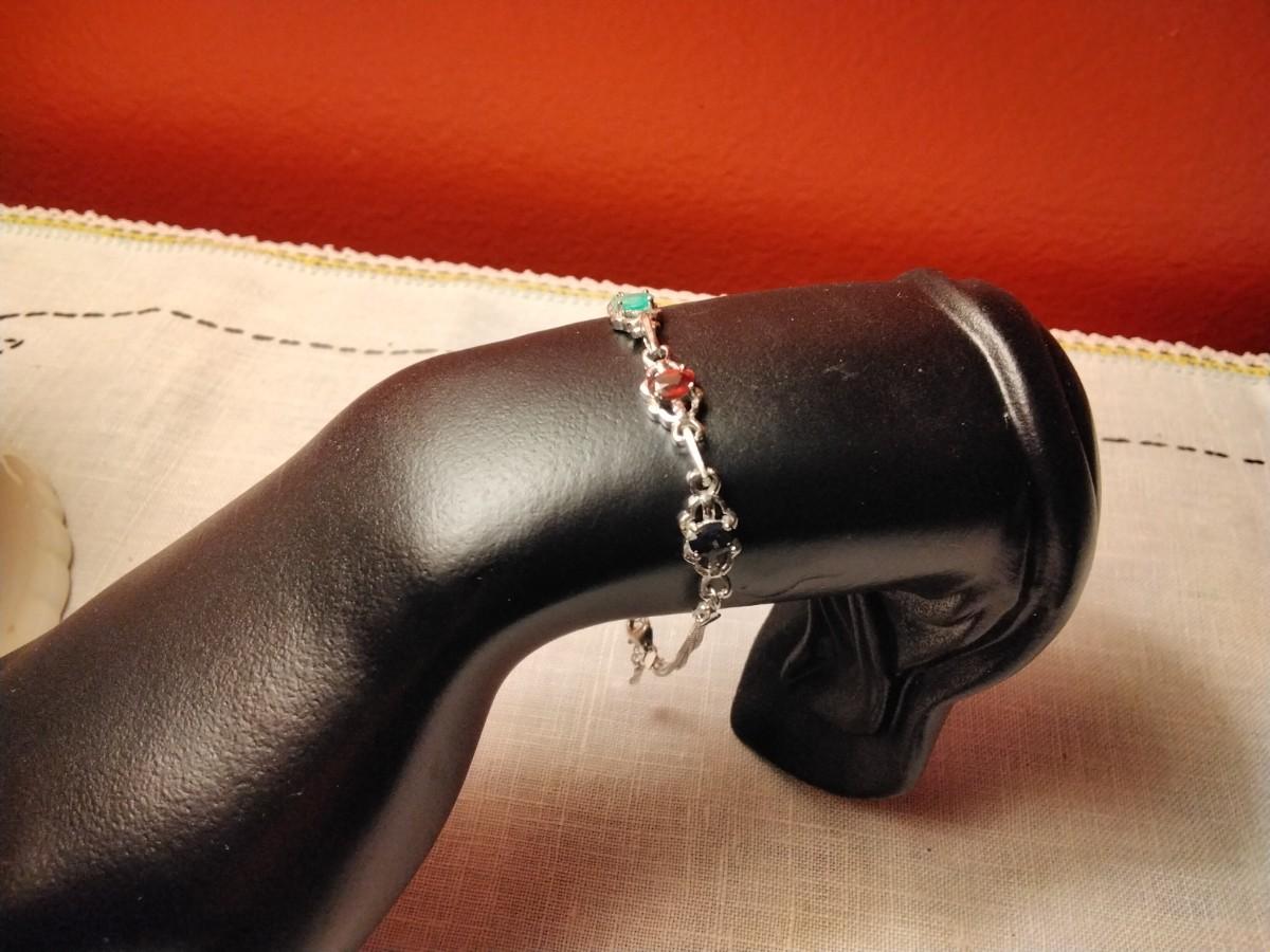 1.80ctw Ruby, Emerald & Sapphire Oval Cut 925 Silver Bracelet