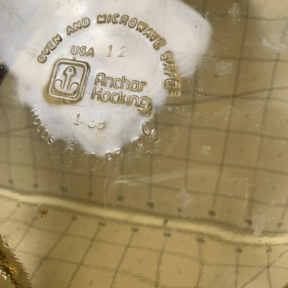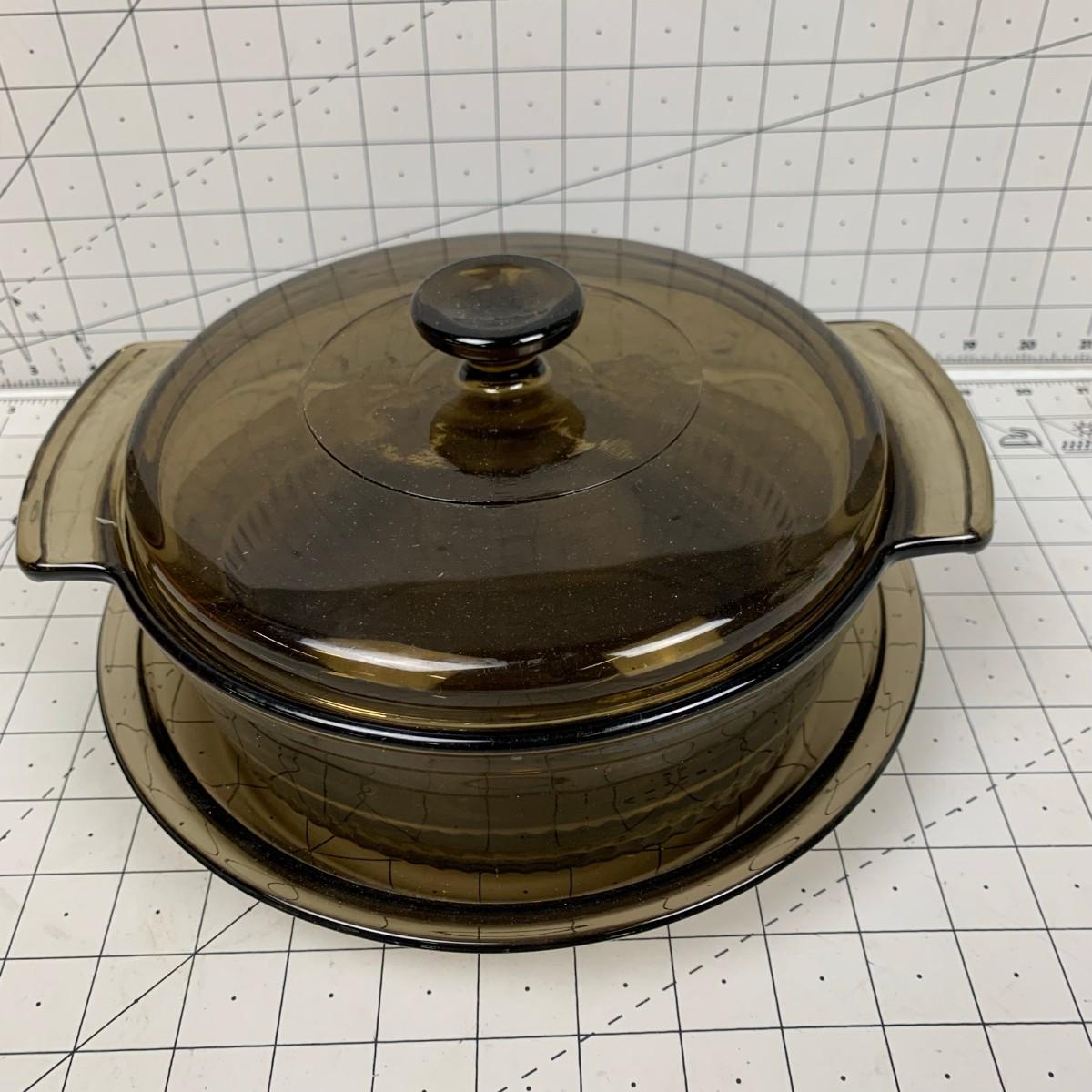 #181 Brown Glass Pyrex Pie Dish & Anchor Hocking Baking Bowl w lId