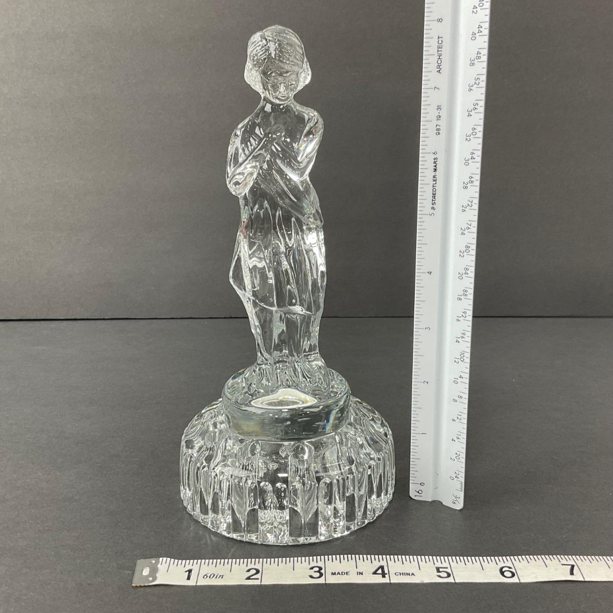 One Cambridge art deco art glass draped lady flower frog piece. This piece has no damage, and appears to be in great shape with no visable chips, cracks, or broken pieces. Please see photos for details and condition. Any condition statement is given as a courtesy to a client, is an opinion, and should not be treated as a statement of fact. Reference to condition written, oral or within a condition report shall not be regarded as a full account of condition and may not include all defects, alterations, or restorations. Absence of a condition report does not imply a lot is flawless or lacking imperfections or damage. Katherine’s Auction & Appraisal Service shall have no responsibility for any error or omission. Returns shall not be accepted on the basis of condition. ::: Shipping is available on this lot. If you require shipping you must let us know at the close of the auction. We will coordinate with you after the item has been won. Shipping fees will include insurance up to or exceeding the value of all items being mailed. If you have any questions regarding this lot please contact the auctioneer either via this website, by direct email or by phone. PICK UP TIMES and other important information can be found in the TERMS and DESCRIPTION of the auction. Please take a look for pertinent information. Thanks!