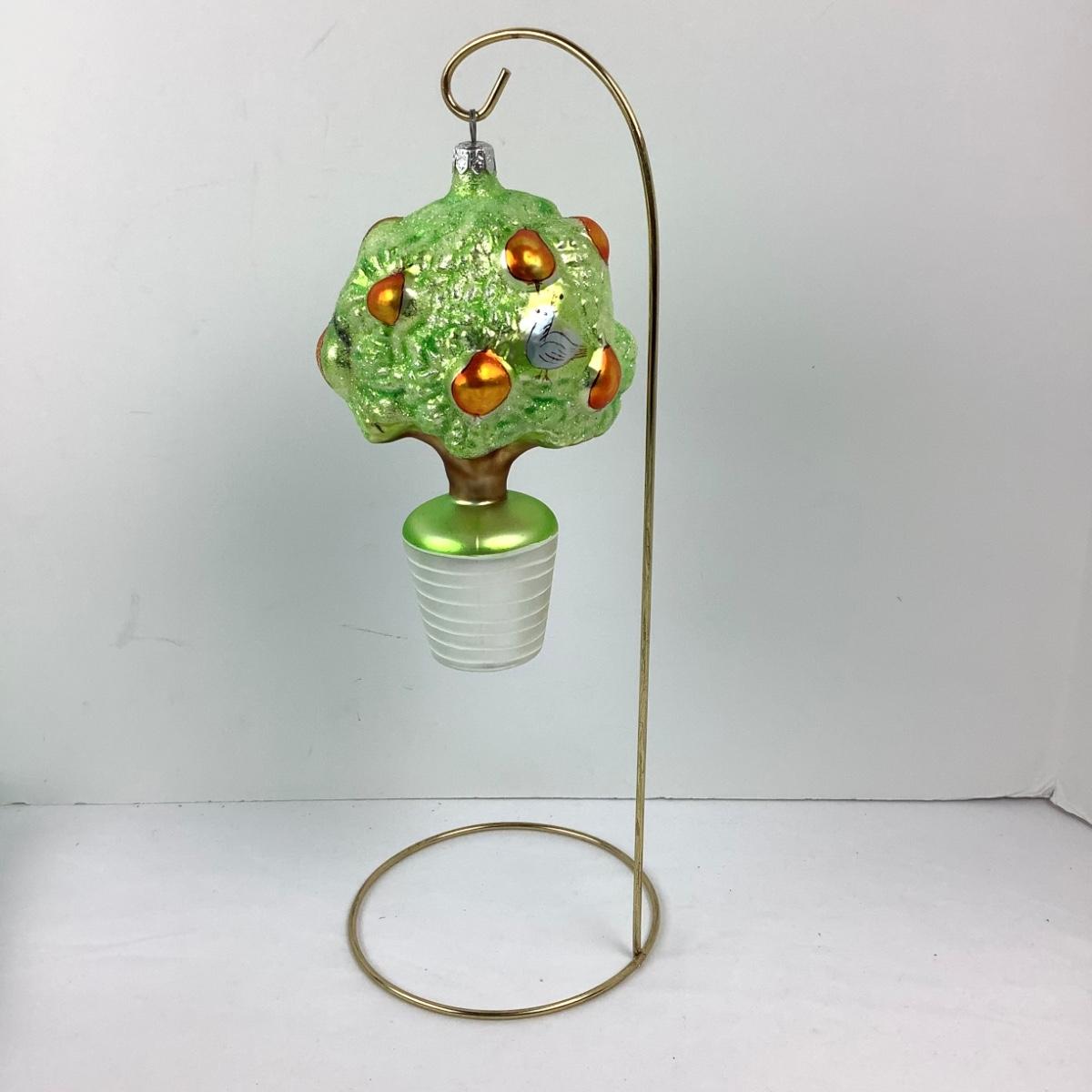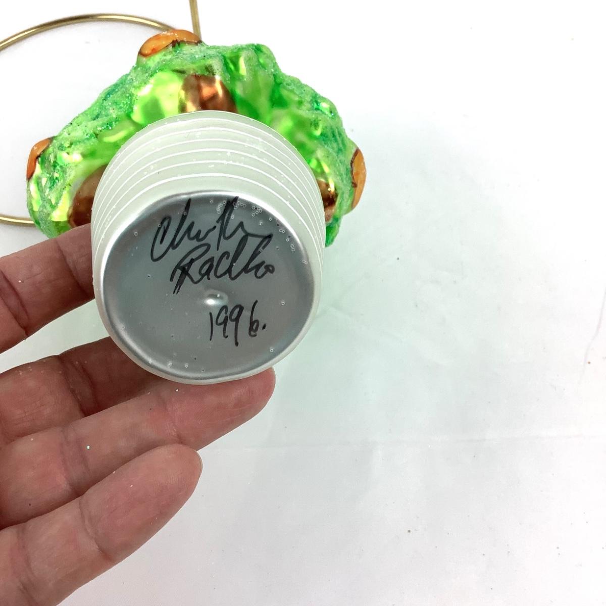 The ornament is signed by Christopher Radko on the bottom, it is from 1996 for the "Twelve Days of Christmas" Series. It has a silver tone ornament crown. There are 2 of these in this sale-this is not a duplicate. There is no box, or tag, small black mark on one side of the ornament.