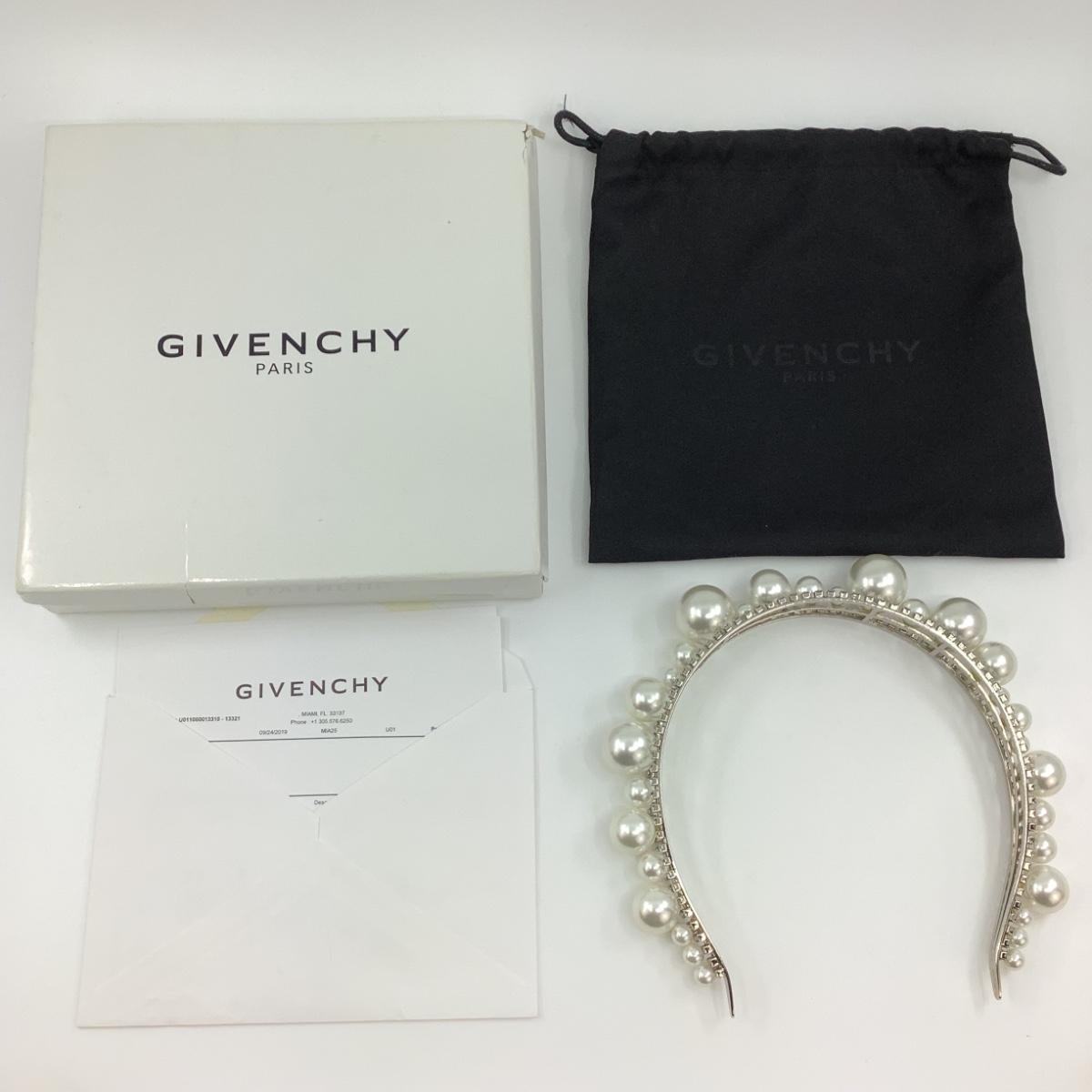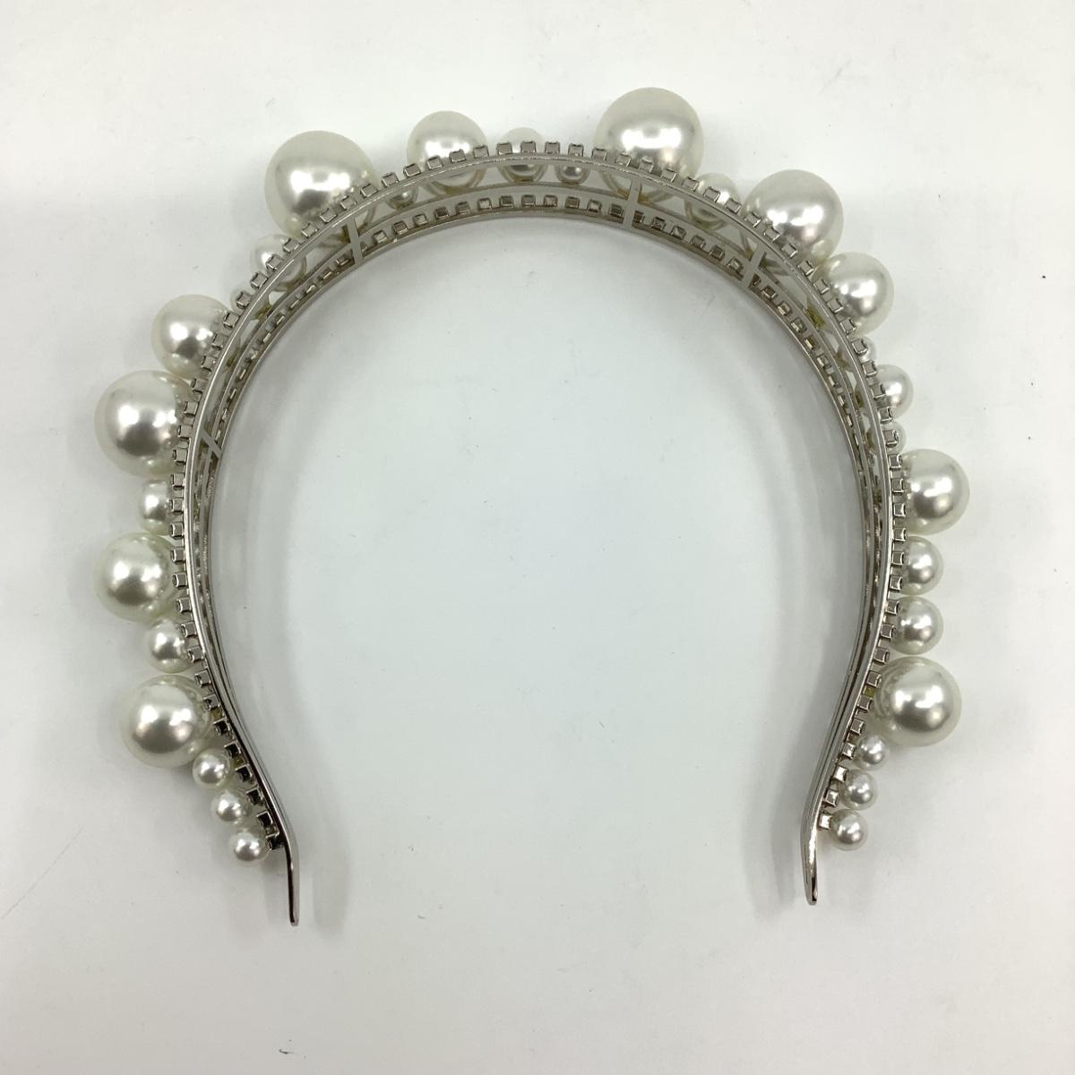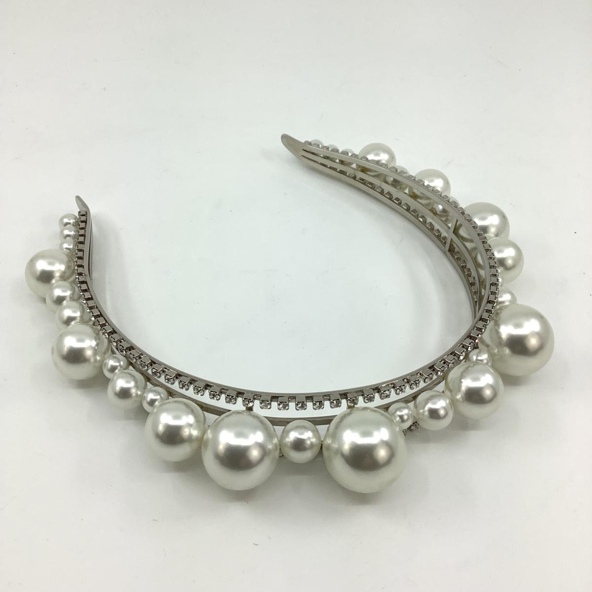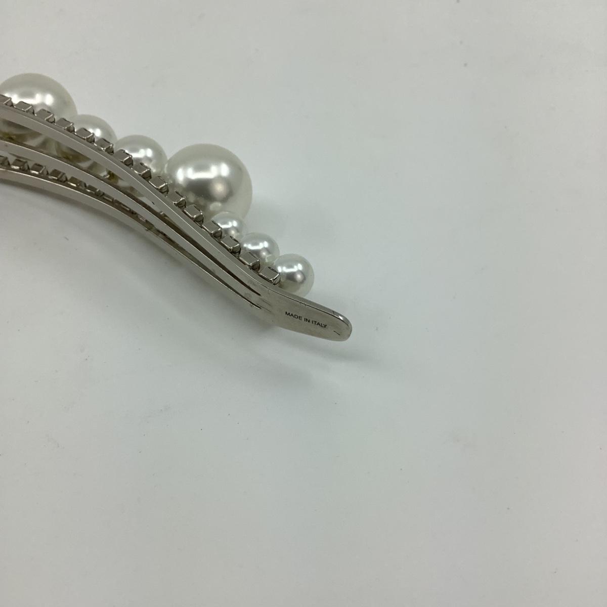 Silvertone plated brass, acrylic pearls and crystal accents. Includes gift box and dustbag.