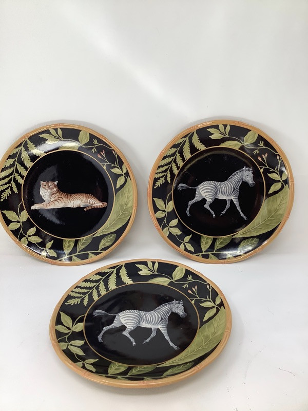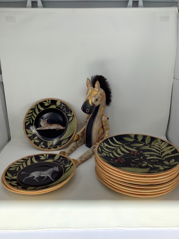 181 Jungle Themed Dishes with Painted Wooden Zebra