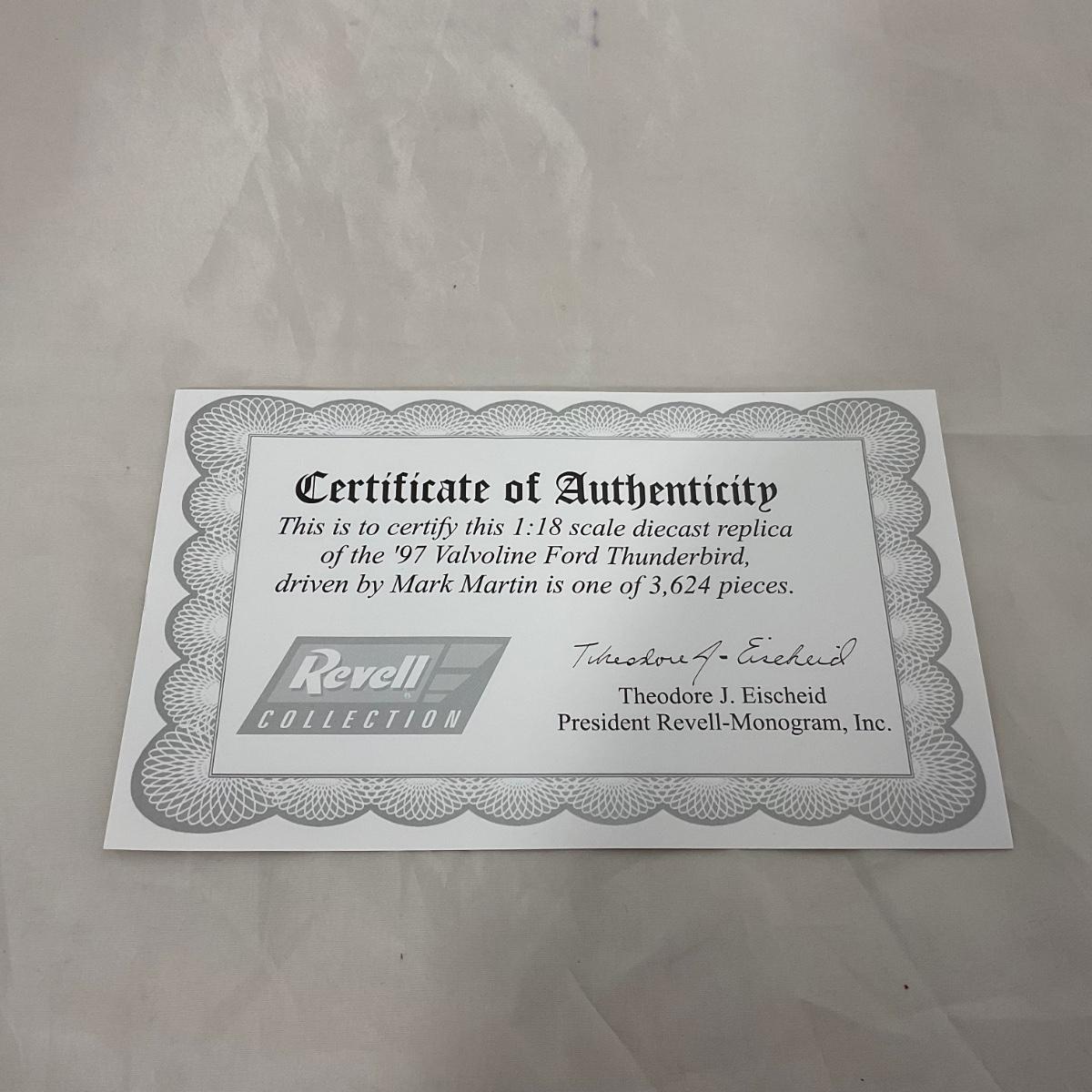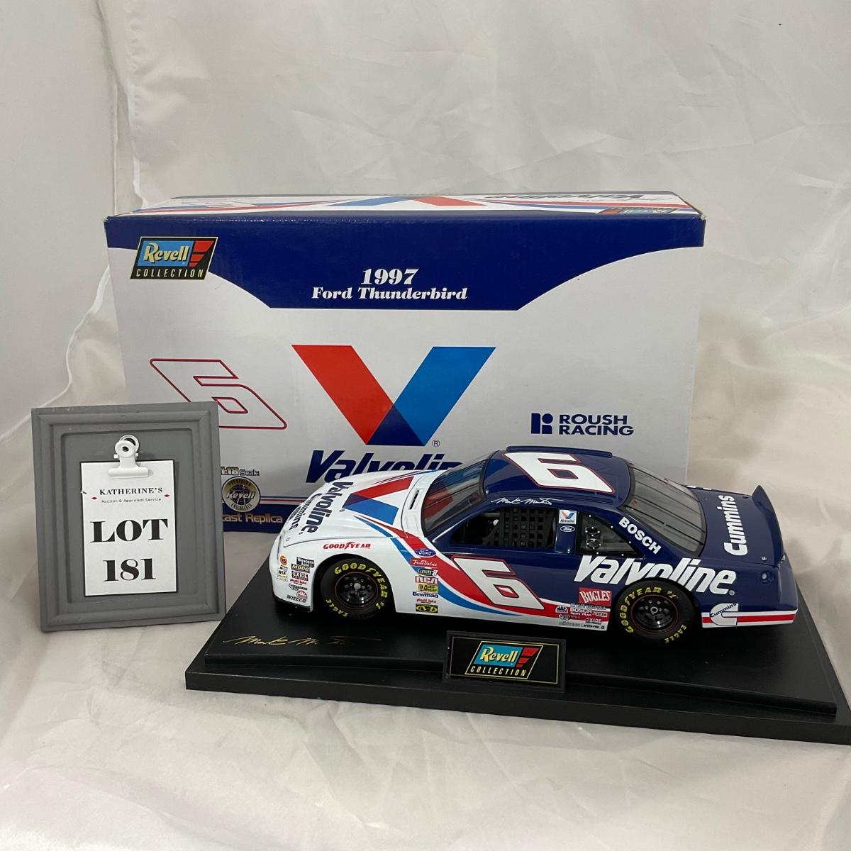 One NASCAR die cast 1:18 scale 1997 Valvoline Ford Thunderbird figure. Comes with a Certificate of Authenticity. Please see photos for details and condition. ::: Shipping is available on this lot. If you require shipping you must let us know at the close of the auction. We will coordinate with you after the item has been won. Shipping fees will include insurance up to or exceeding the value of all items being mailed. If you have any questions regarding this lot please contact the auctioneer either via this website, by direct email or by phone. PICK UP TIMES and other important information can be found in the TERMS and DESCRIPTION of the auction. Please take a look for pertinent information. Thanks!
