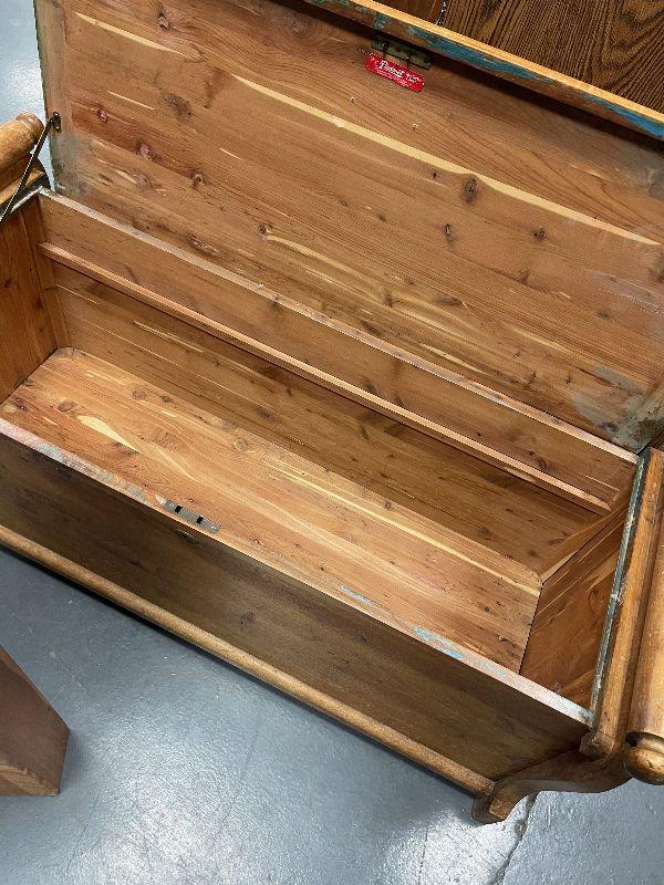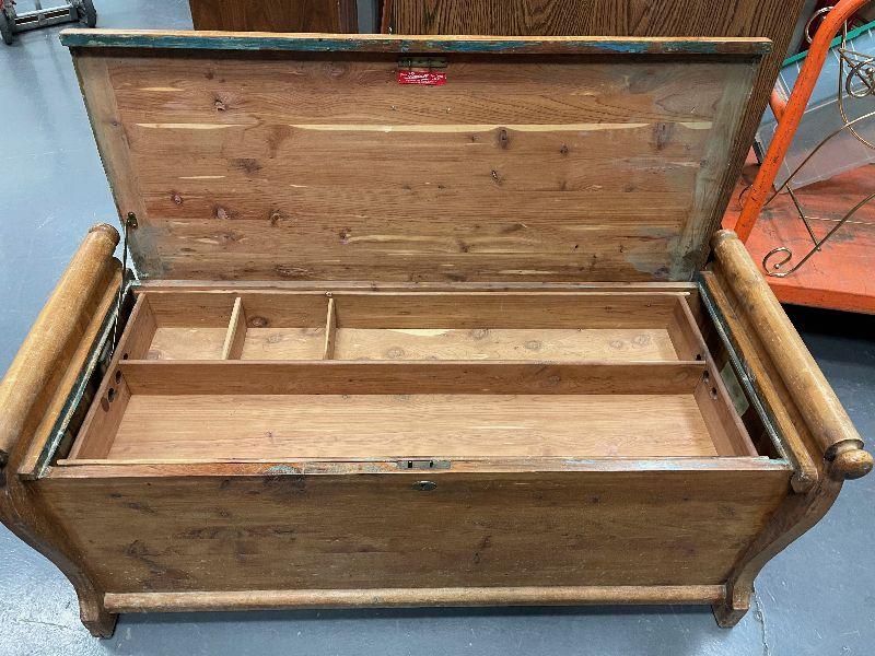 Needs a refinish but 46" x 22" x 21" Still a neat Piece of Furniture.