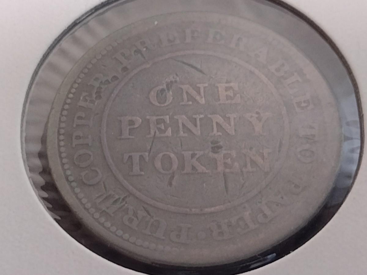 1813 Canadian Nova Scotia Trade and Navigation One Penny Token Circulated Condition (33)