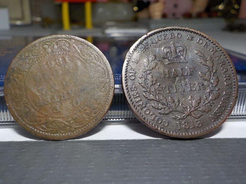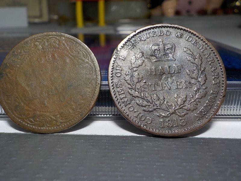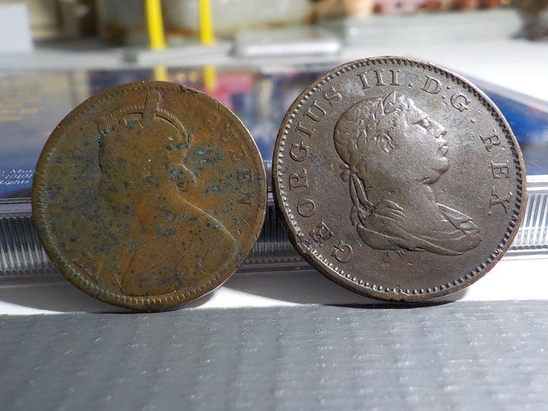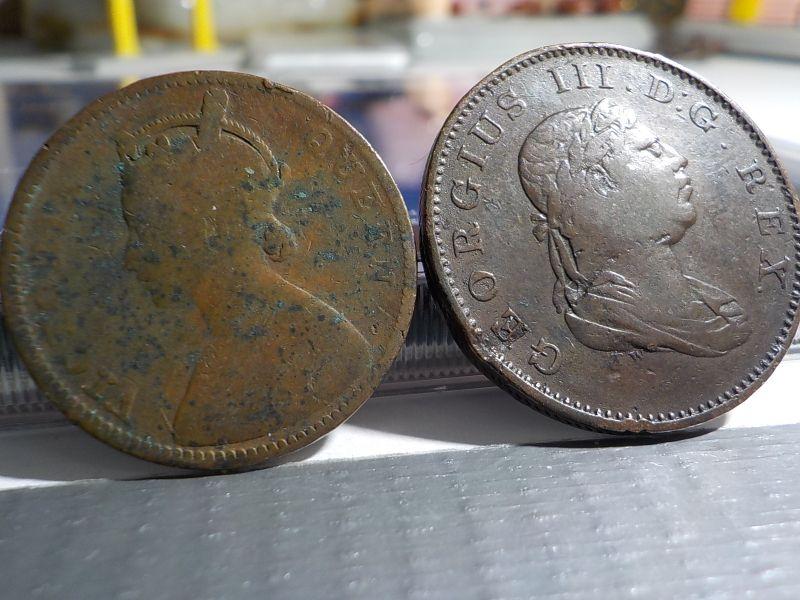 1813 King George Half Tiver and 1862 Queen Victoria coin.