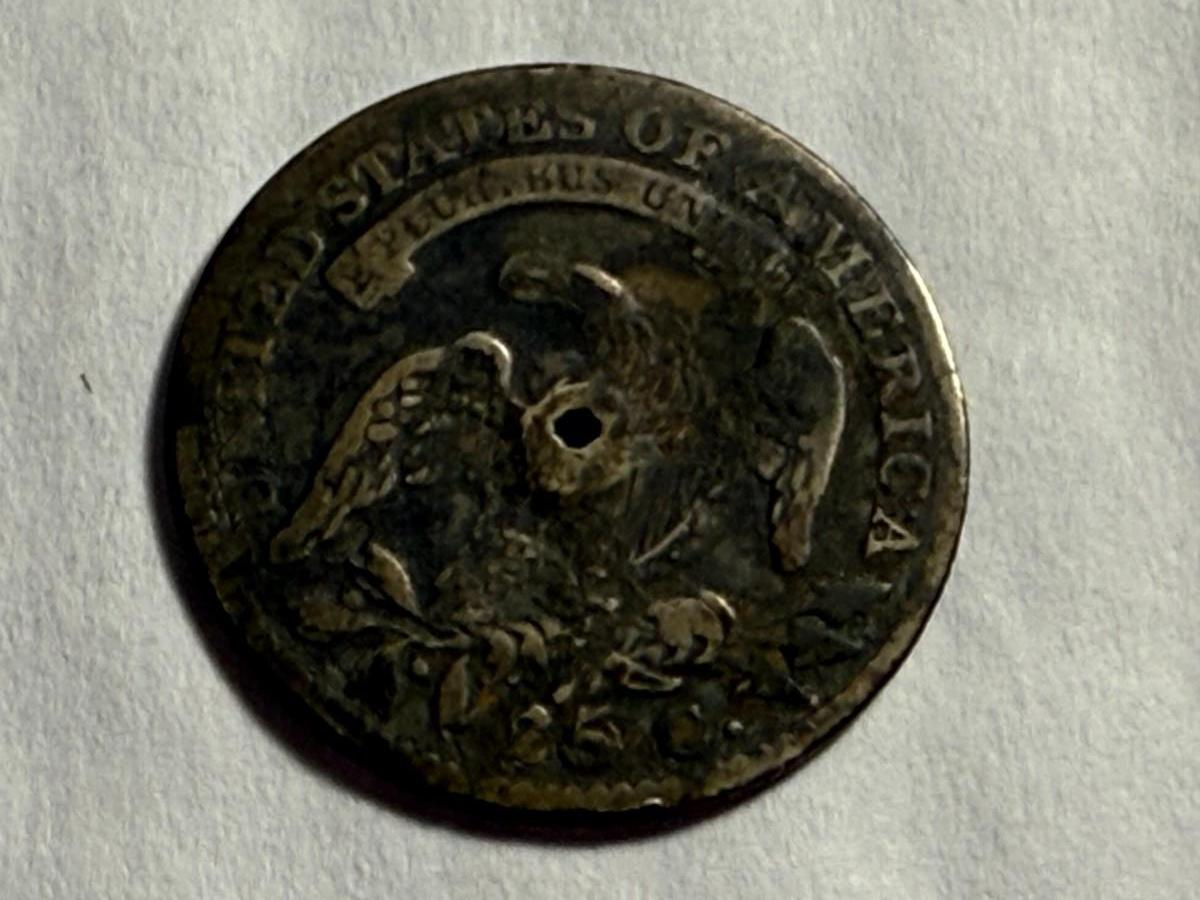 1815 AG/GOOD CONDITION HOLED CAPPED BUST TYPE SILVER QUARTER AS PICTURED. $5 DOMESTIC SHIPPING.