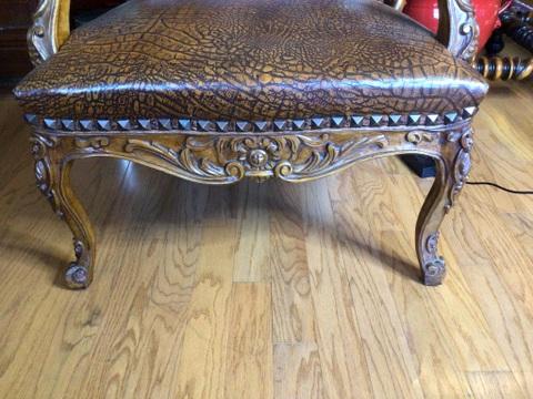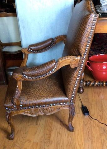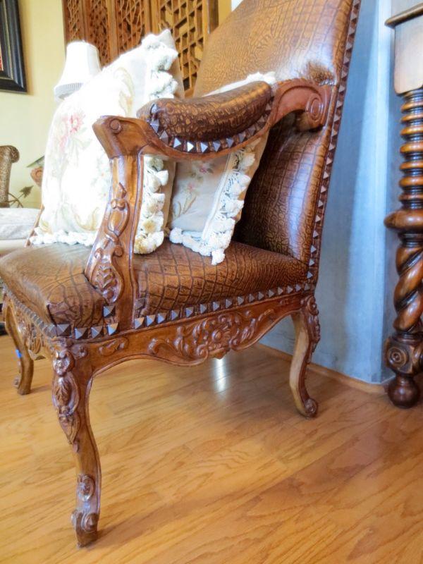 182 - Faux Alligator & Nailhead Trimmed Arm Chair -  Heavily Carved  #1