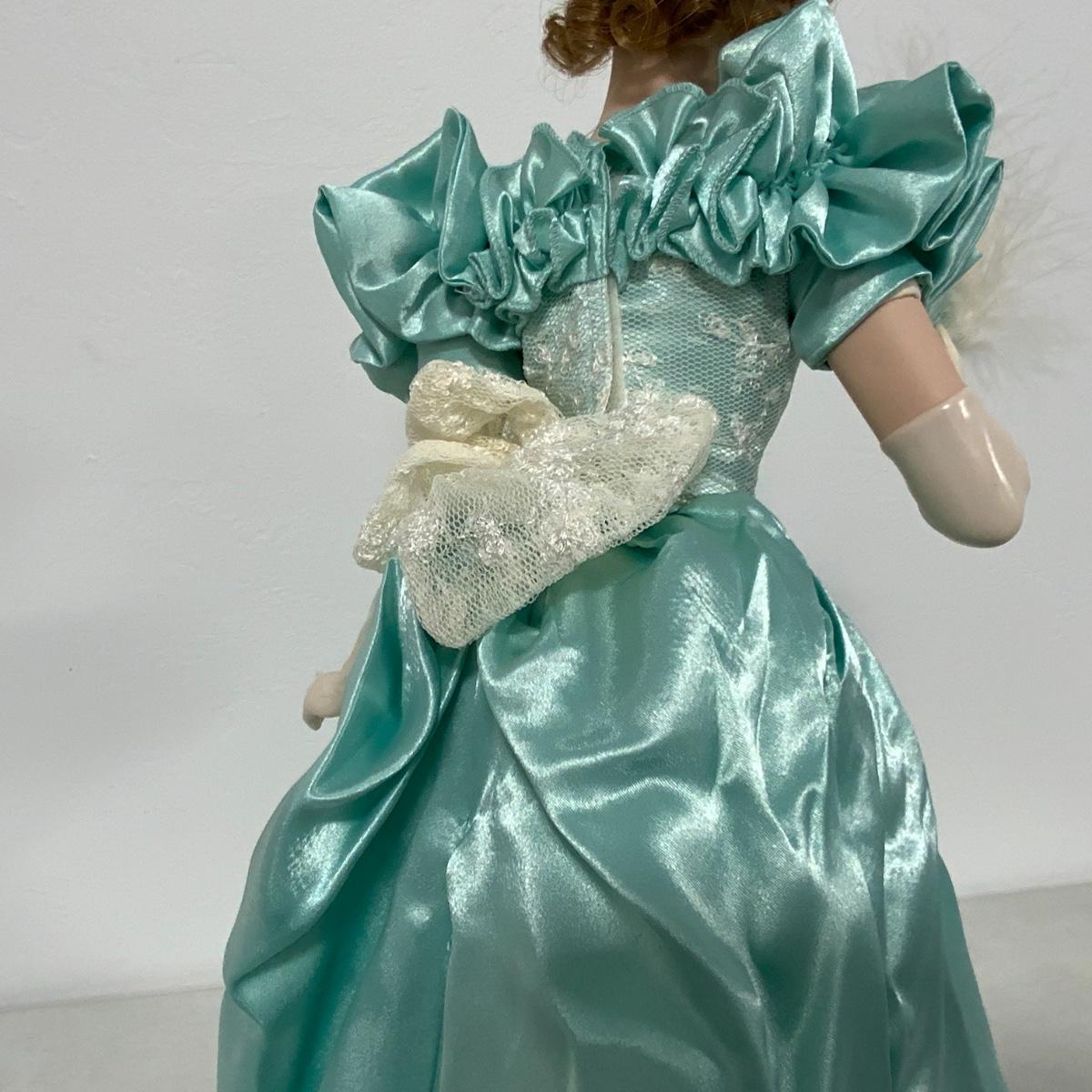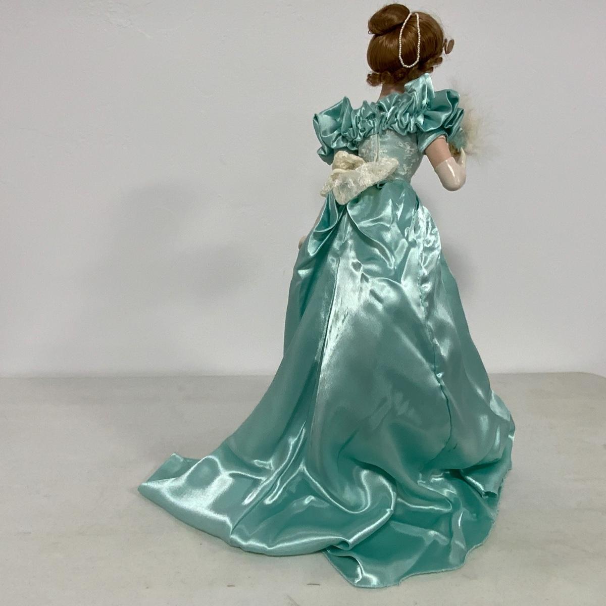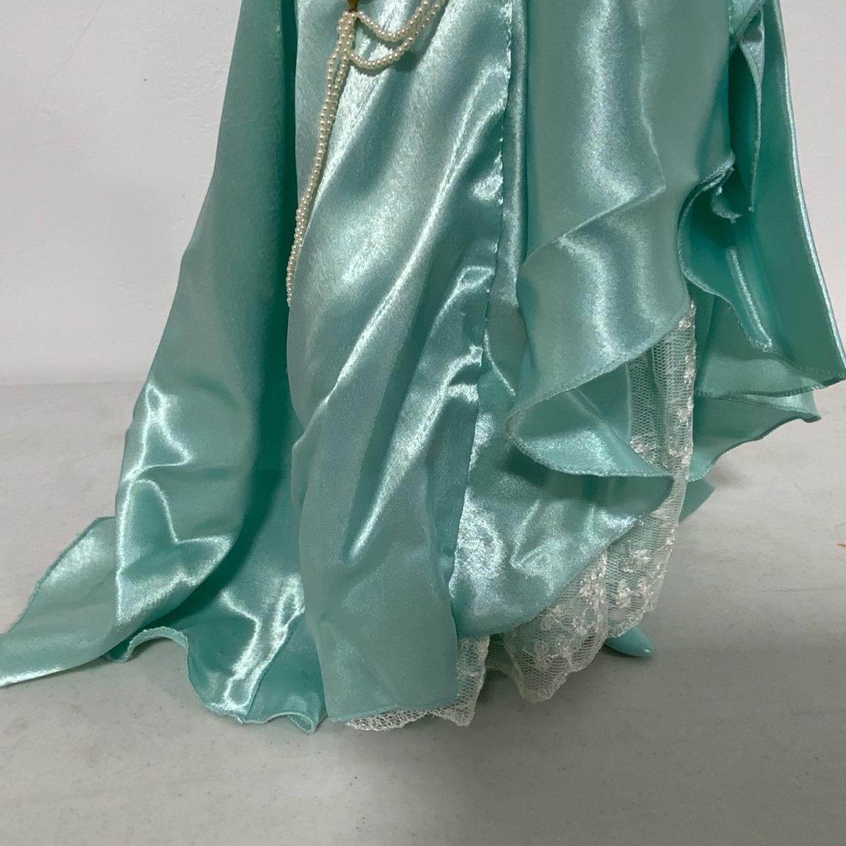 -182- Franklin Mint Heirloom Doll | Teal Silky Dress