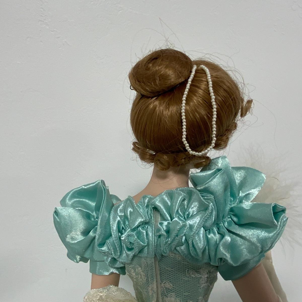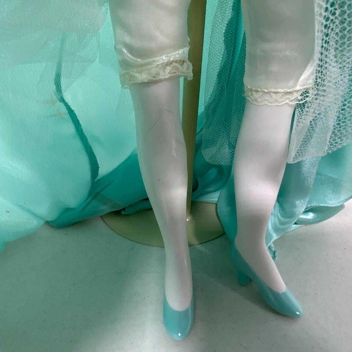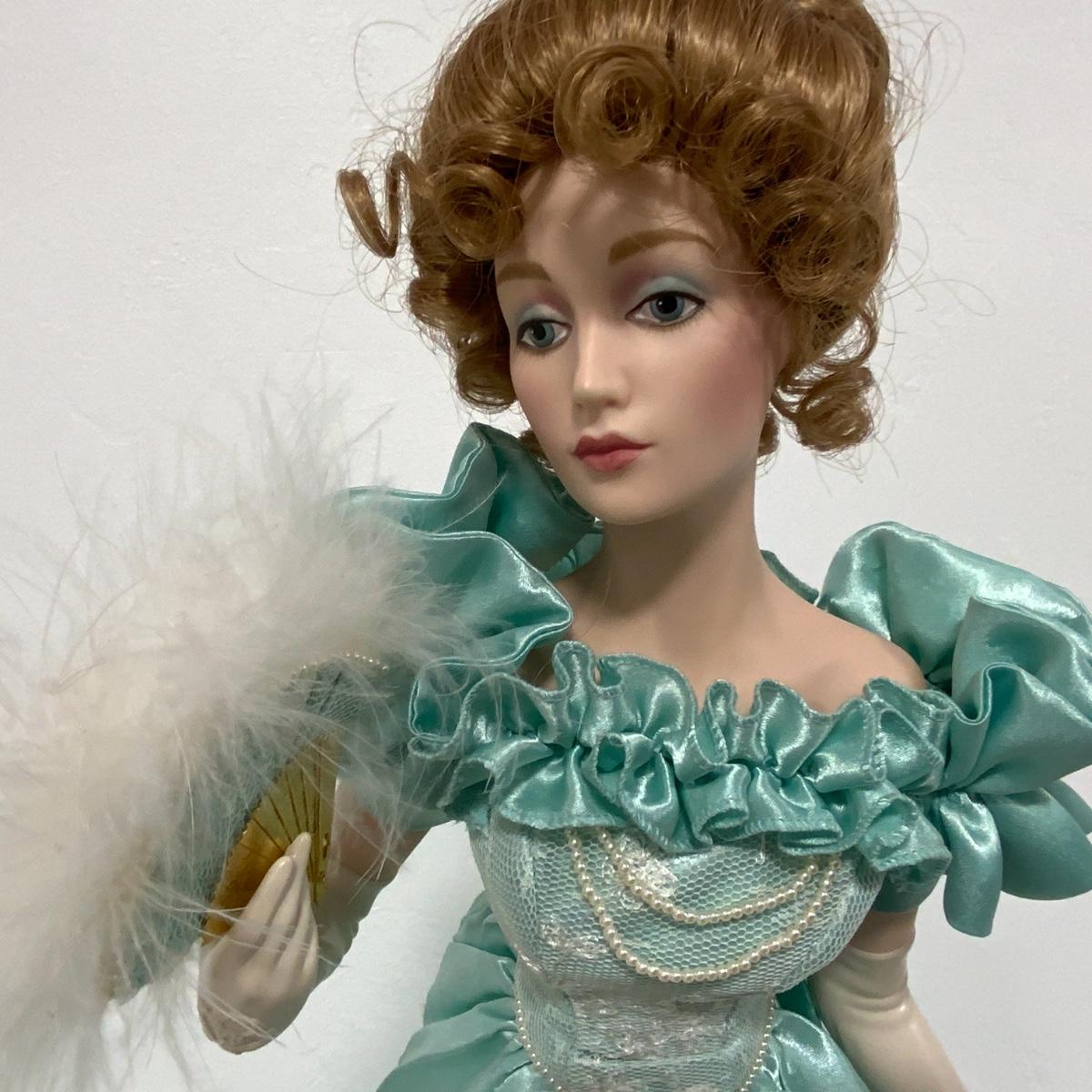 From the Estate of Peter and Alice Radovanovich: Gorgeous Franklin Mint Heirloom Doll with a sassy Teal Silky Dress. This doll does have a repaired leg, shown in the last picture. Please see photos for details and condition. ::: Shipping is NOT available on this lot. If you have any questions regarding this lot please contact the auctioneer either via this website, by direct email or by phone. PICK UP TIMES and other important information can be found in the TERMS and DESCRIPTION of the auction. Please take a look for pertinent information. Thanks!