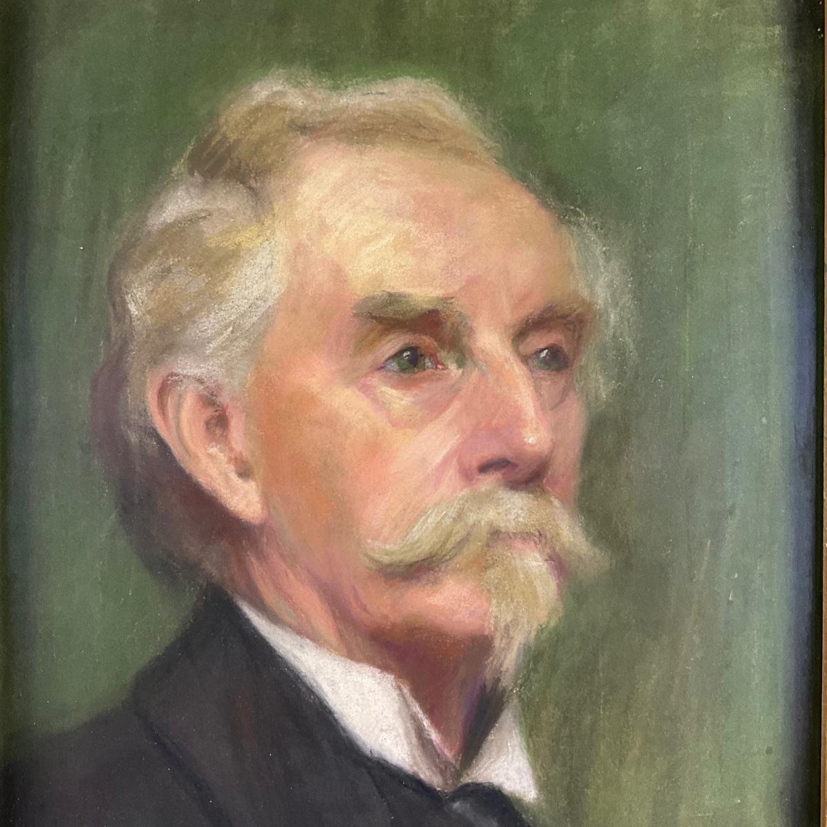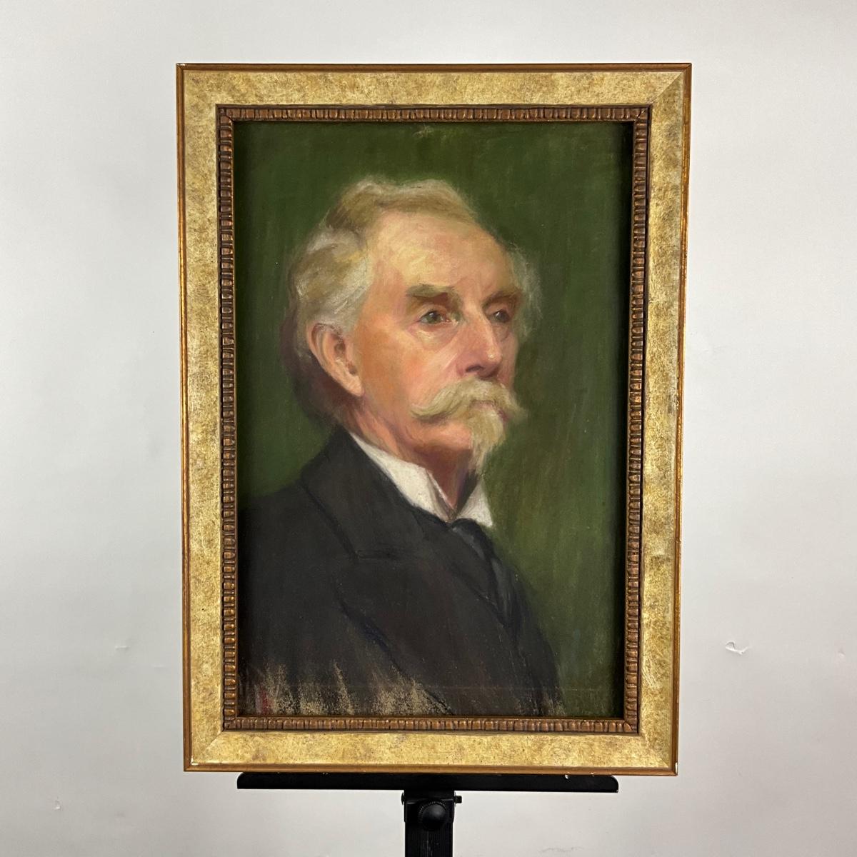 084 American School, Pastel Portrait Of Older Gentleman With Mustache Circa 20th Century