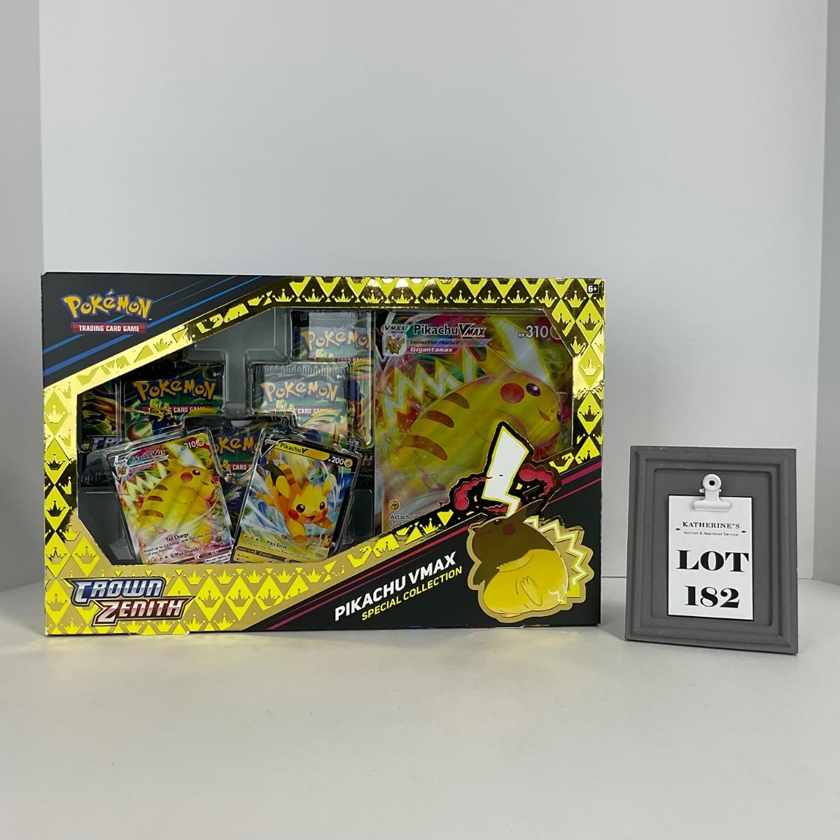 One Pikachua VMax special collection unopened. 9 inches by 14 inches. Please see photos for details and condition. ::: Shipping is available on this lot. If you require shipping you must let us know at the close of the auction. We will coordinate with you after the item has been won. Shipping fees will include insurance up to or exceeding the value of all items being mailed. If you have any questions regarding this lot please contact the auctioneer either via this website, by direct email or by phone. PICK UP TIMES and other important information can be found in the TERMS and DESCRIPTION of the auction. Please take a look for pertinent information. Thanks!