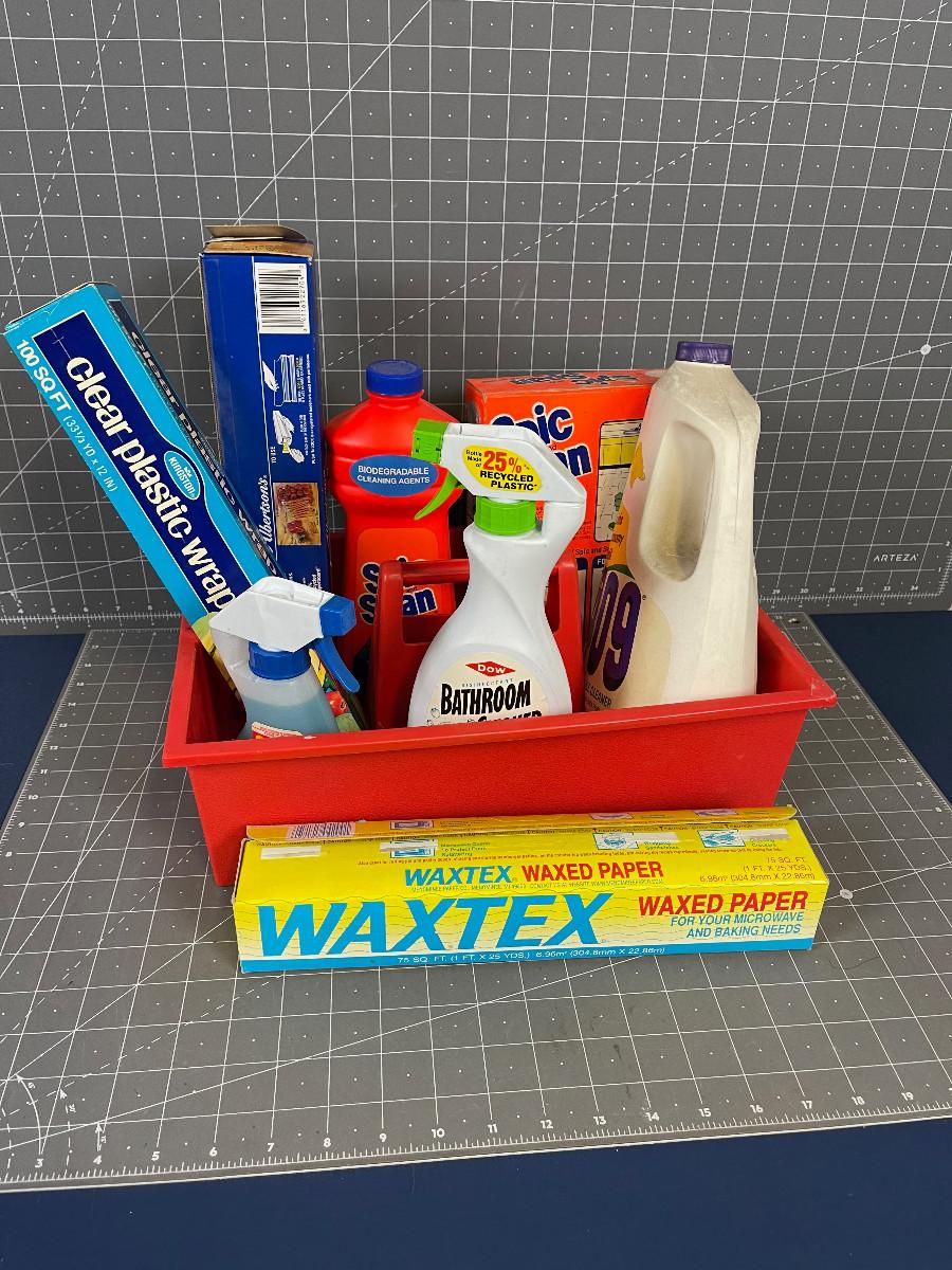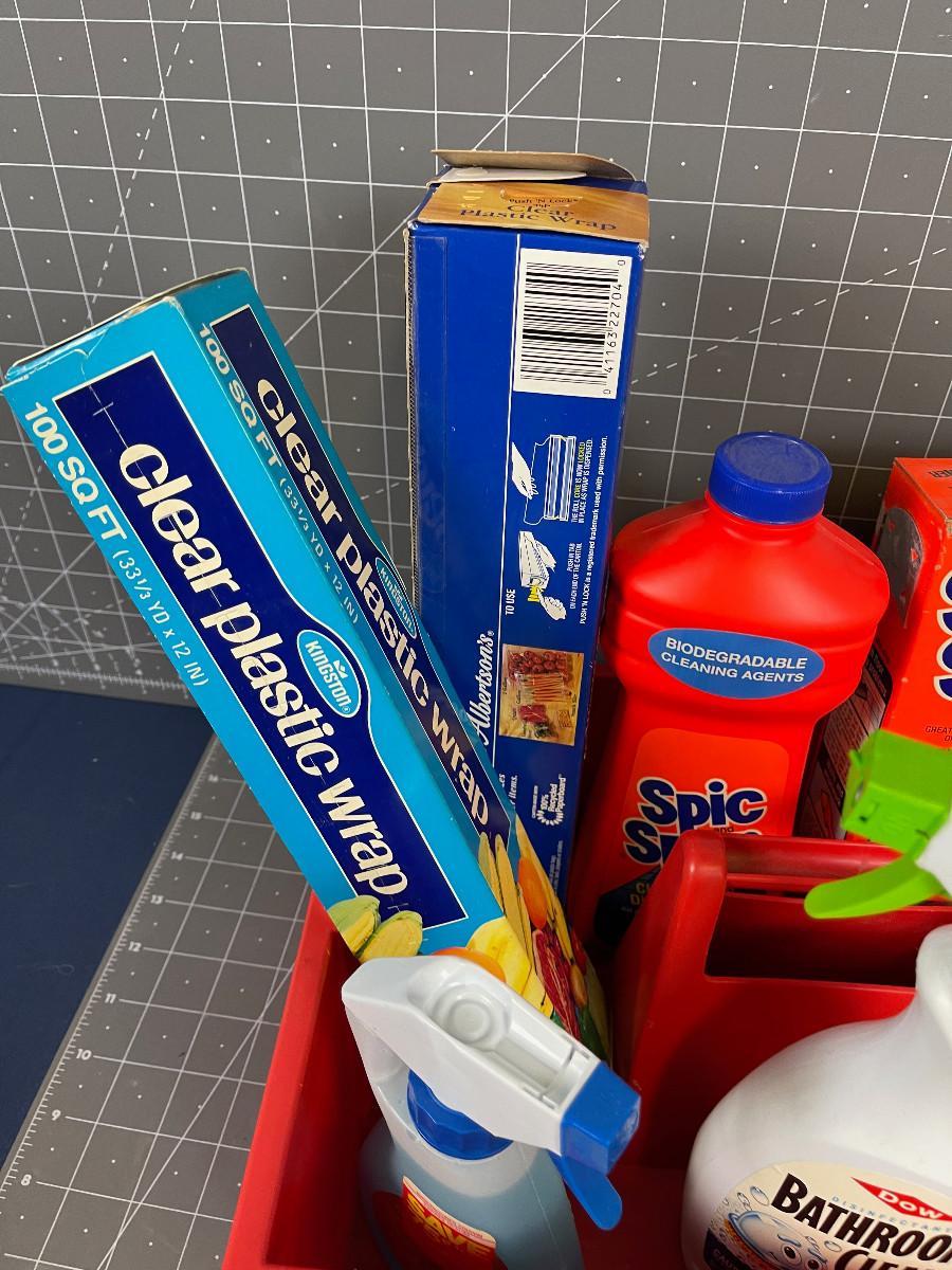 #182 Saran Wrap and Kitchen Cleaner with a tote.